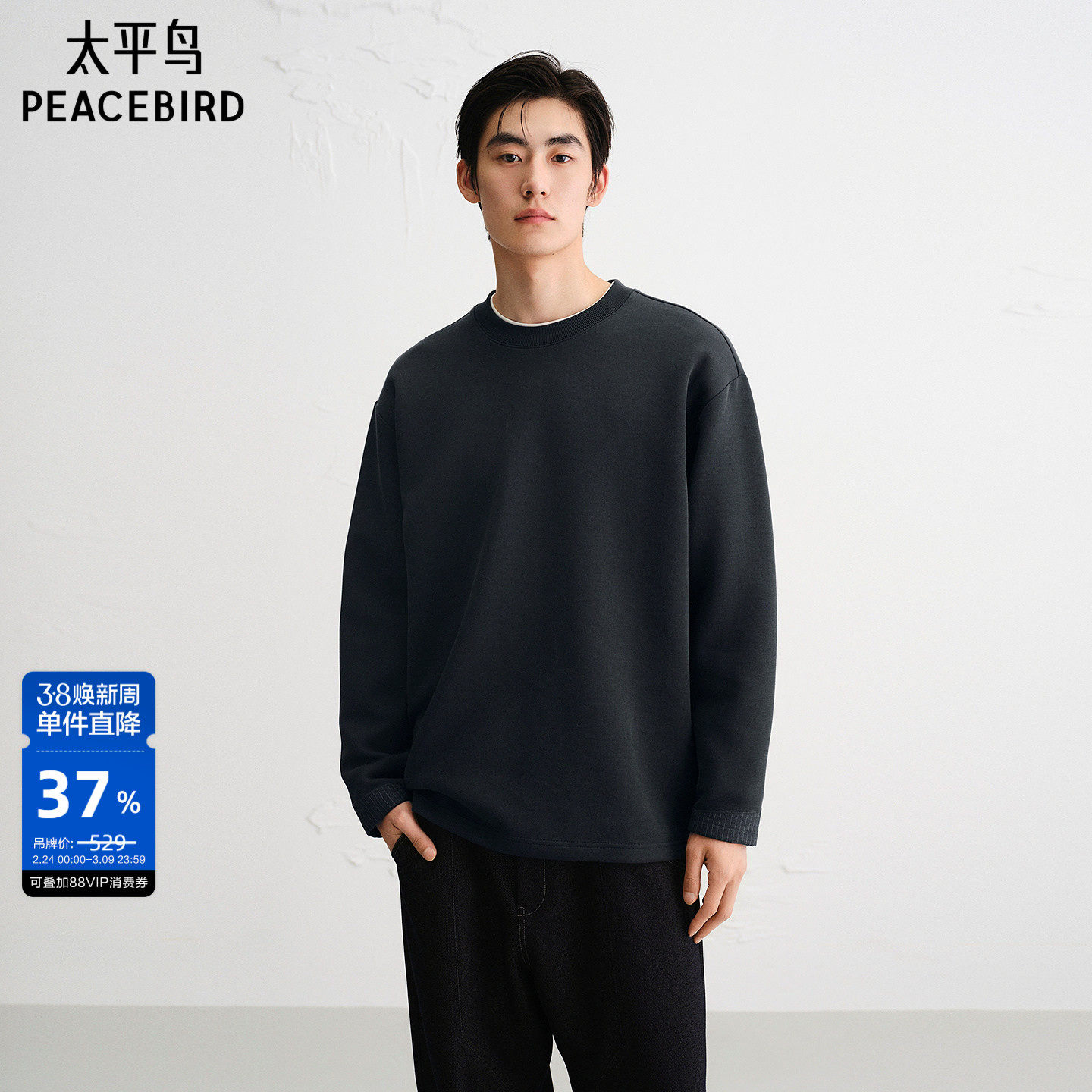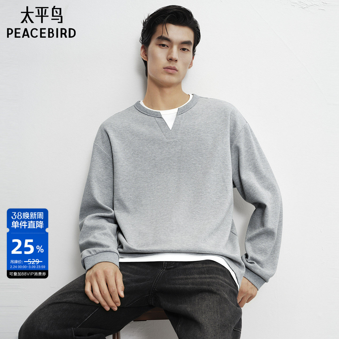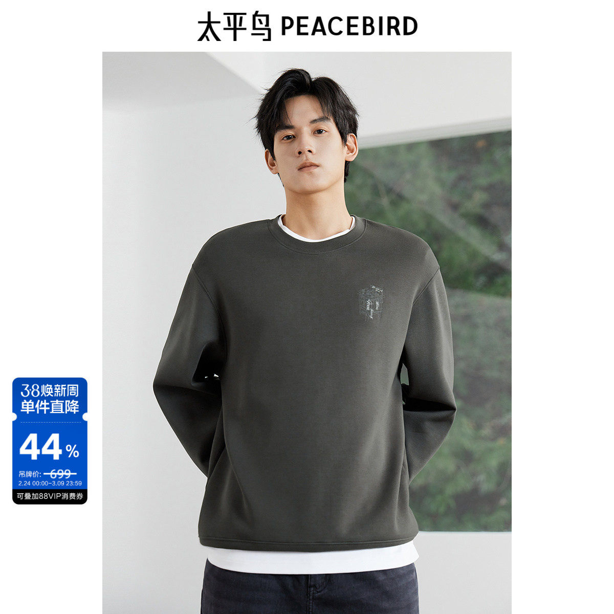 太平鸟男装 休闲卫衣2025秋季新款舒适亲肤圆领卫衣潮流男士卫衣