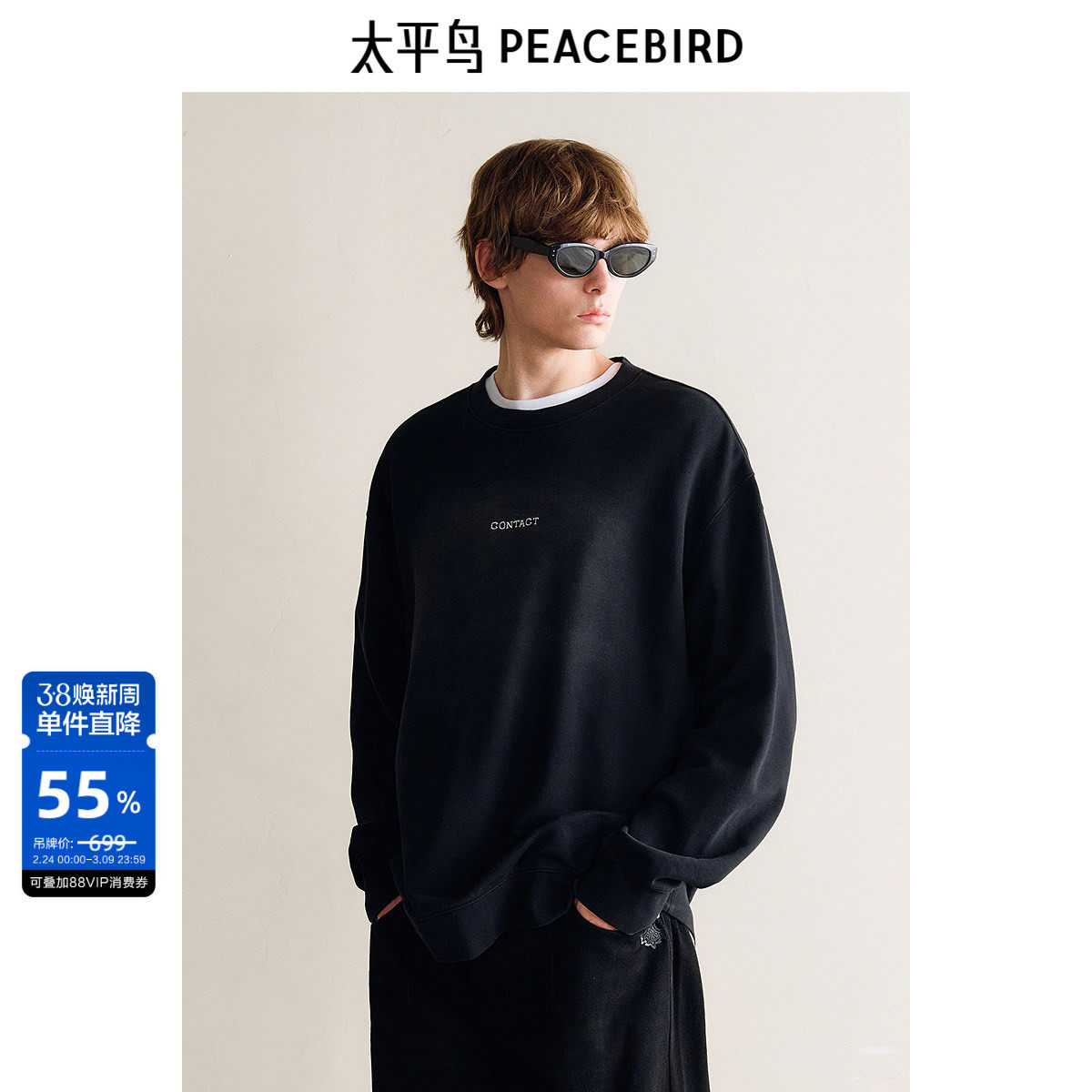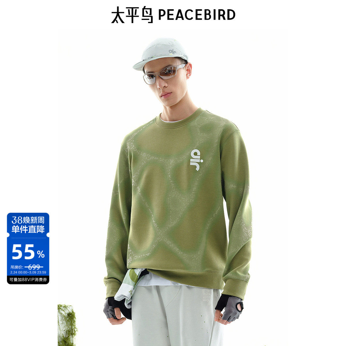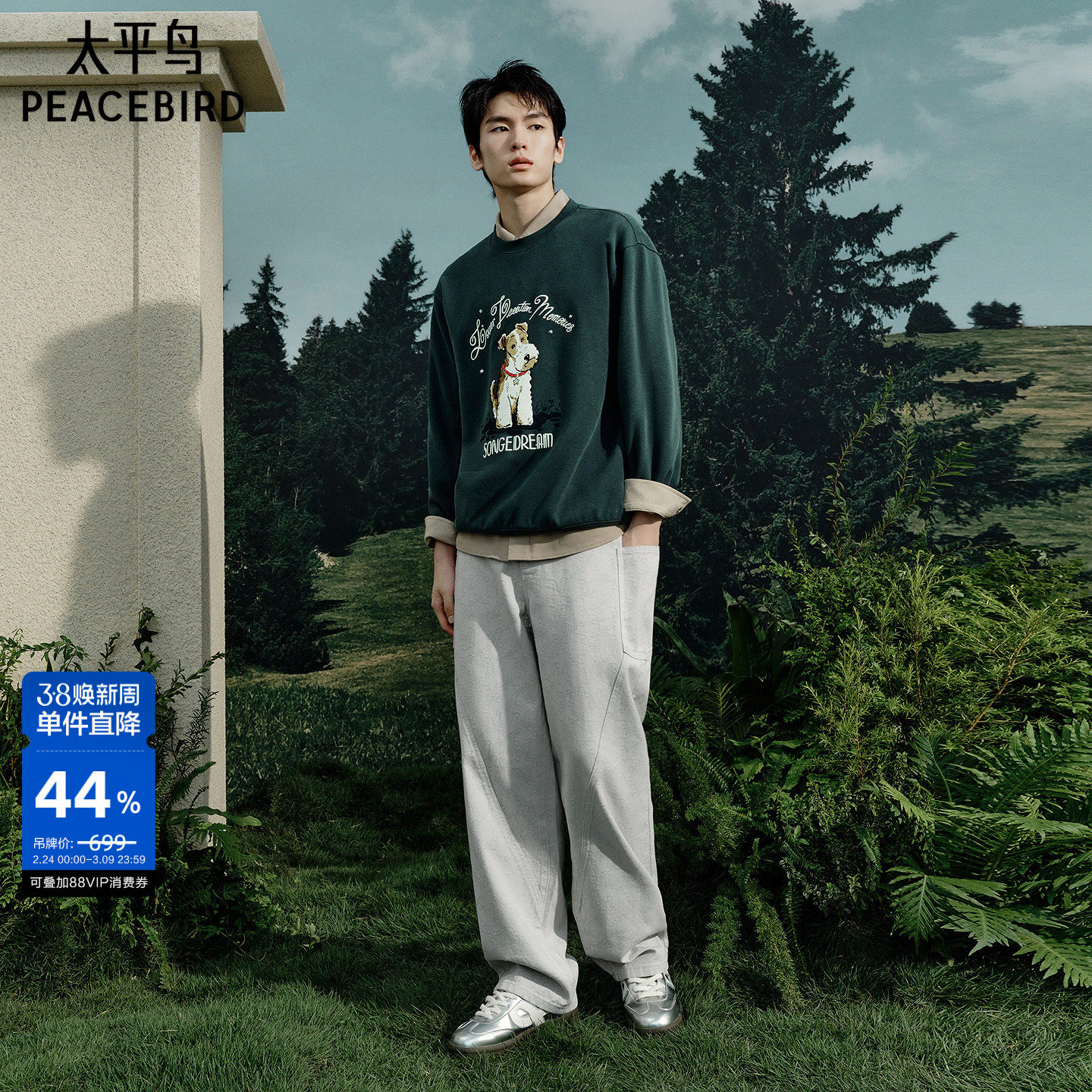 太平鸟男装 休闲卫衣2025秋季新款舒适亲肤圆领卫衣潮流男士卫衣