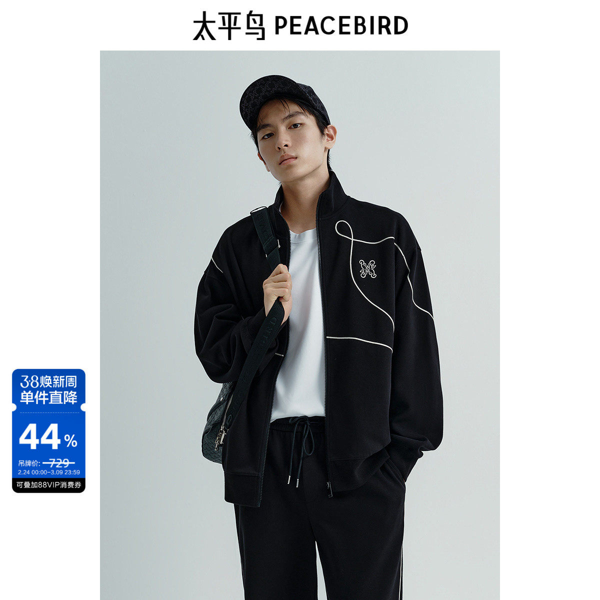 太平鸟男装 休闲卫衣男士时尚经典立领拉链卫衣撞色刺绣外套上衣