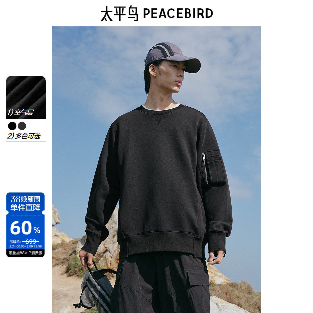 太平鸟男装 休闲卫衣2025春季新款口袋拼接重磅卫衣男士圆领卫衣