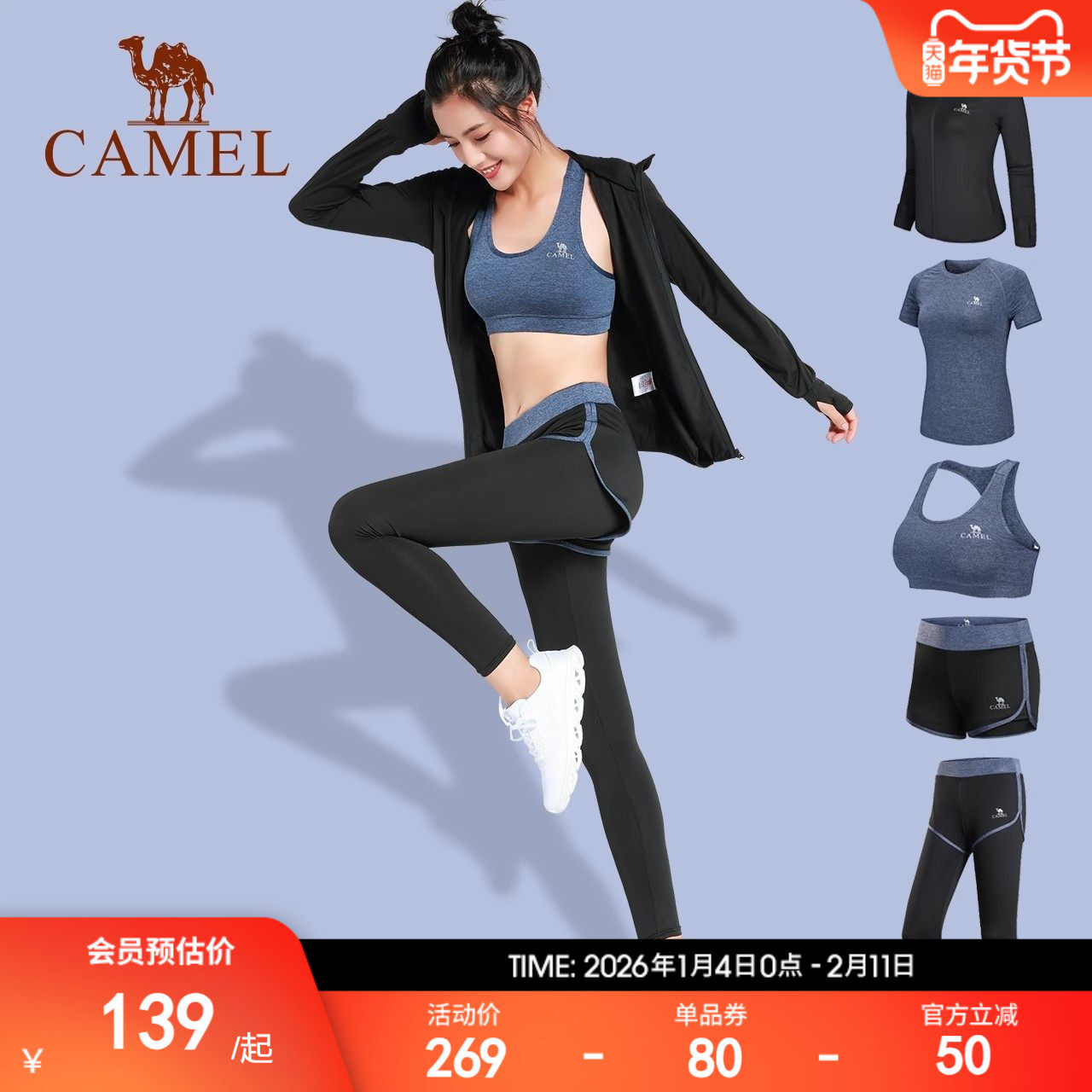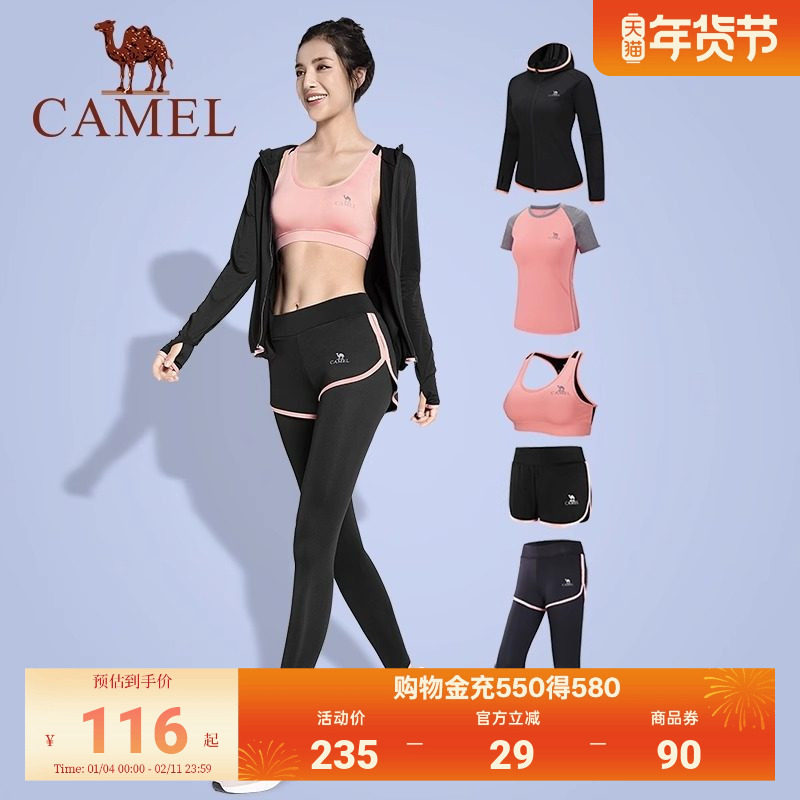 骆驼瑜伽服套装女款秋冬季防晒休闲跑步运动服时尚修身健身五件套