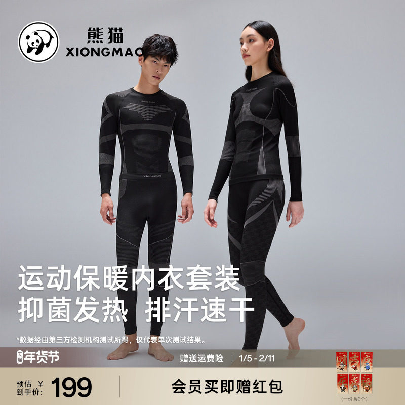 熊猫户外滑雪速干衣舒适排汗运动跑步弹力男女款保暖内衣套装秋冬