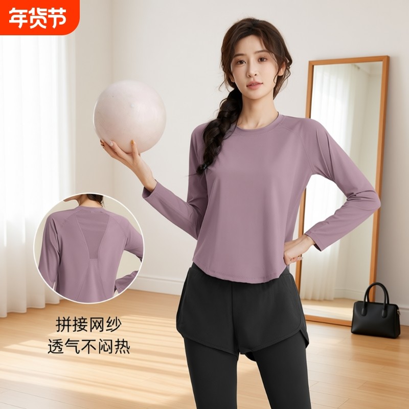 假两件套装跑步瑜伽服上衣女秋冬显瘦紧身女款运动长袖上衣健身服