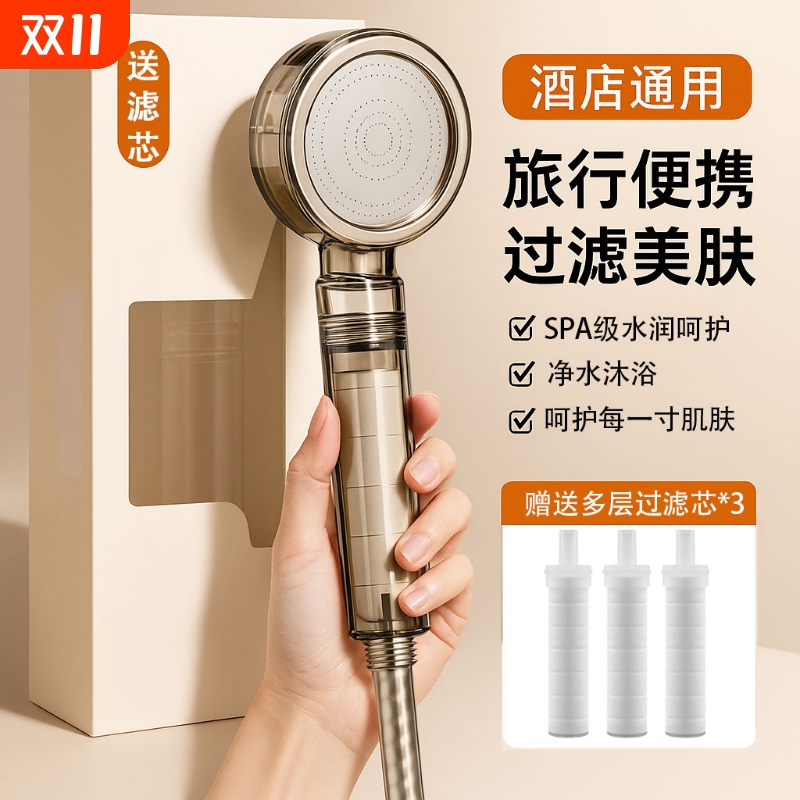 旅行便携过滤增压花洒喷头淋浴酒店旅游美肤过滤器巴厘岛出行专用