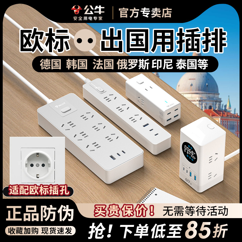 公牛欧标转换插排插头泰国韩国留学旅行充电器欧洲越南巴厘岛德国