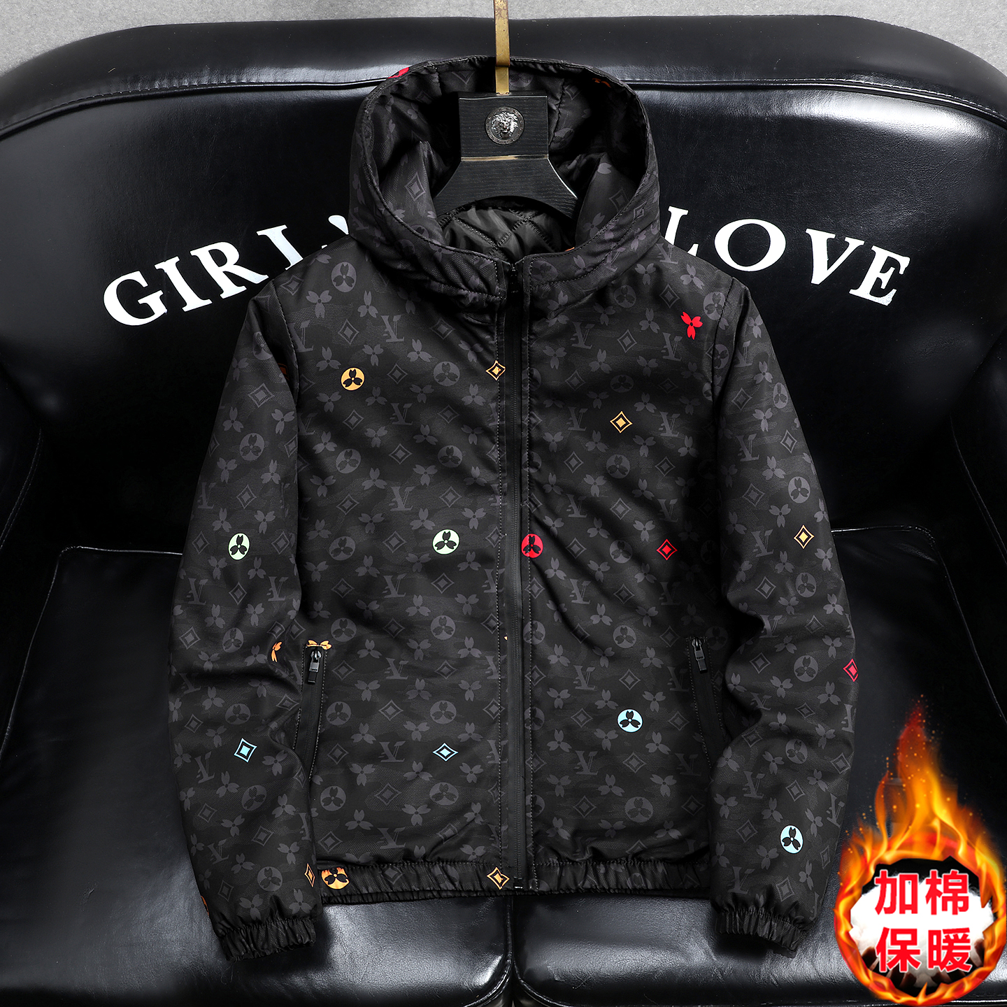 冬季新款潮牌字母印花加厚加棉立领夹克男士时尚休闲百搭保暖棉衣