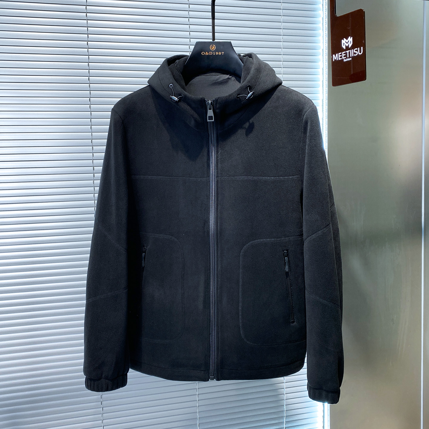 2025秋冬新款男士连帽摇粒绒外套时尚百搭休闲保暖夹克上衣棉服