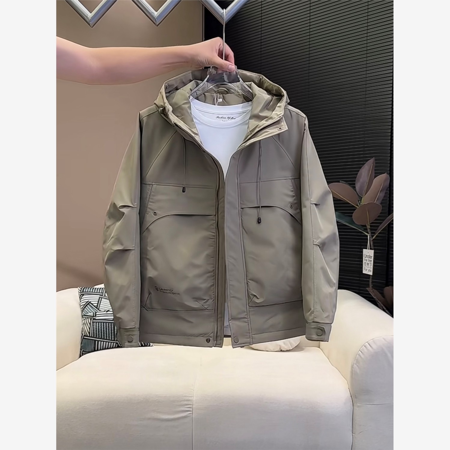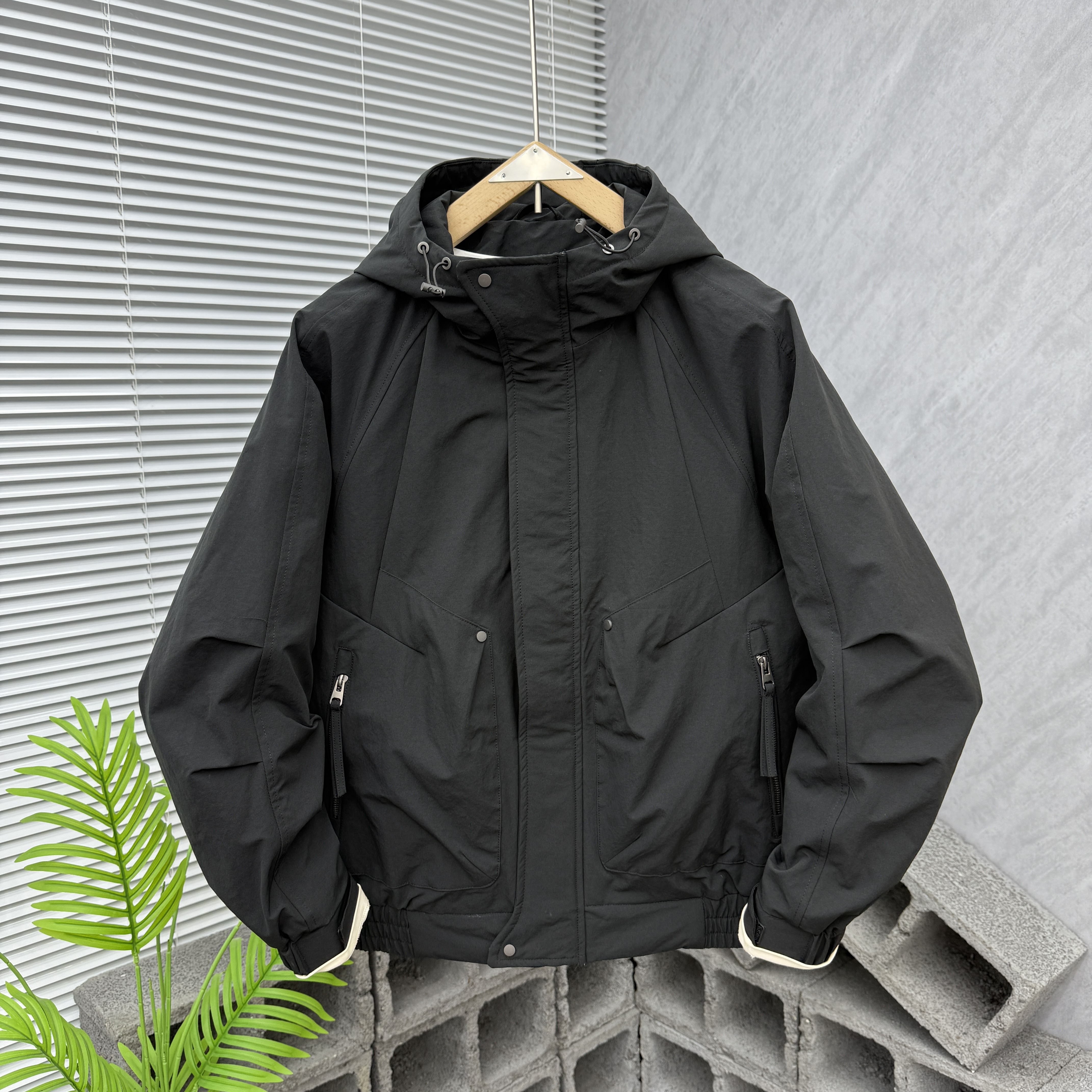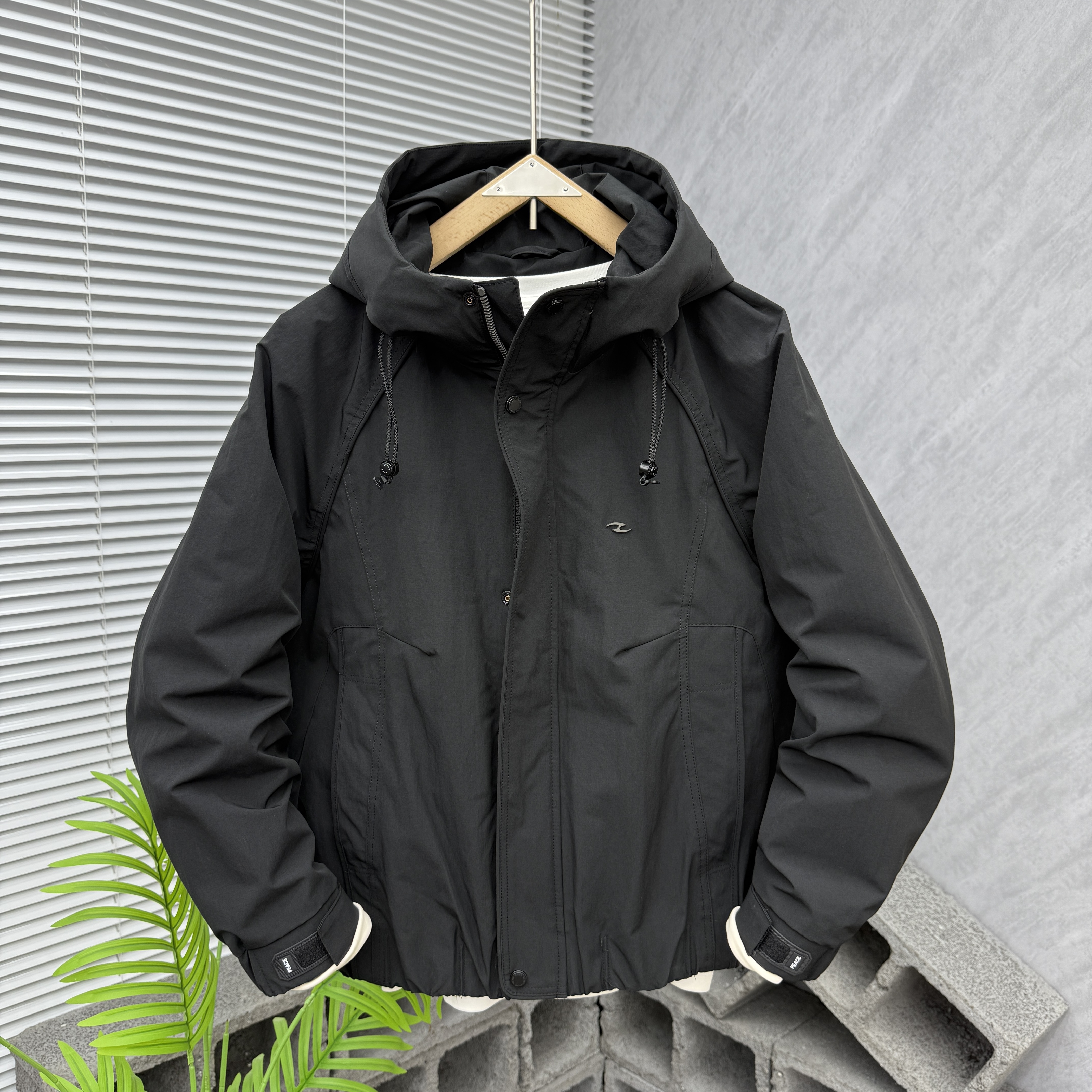 2025秋季新款连帽棉服男纯色简约时尚夹克薄棉外套保暖痞帅冲锋衣