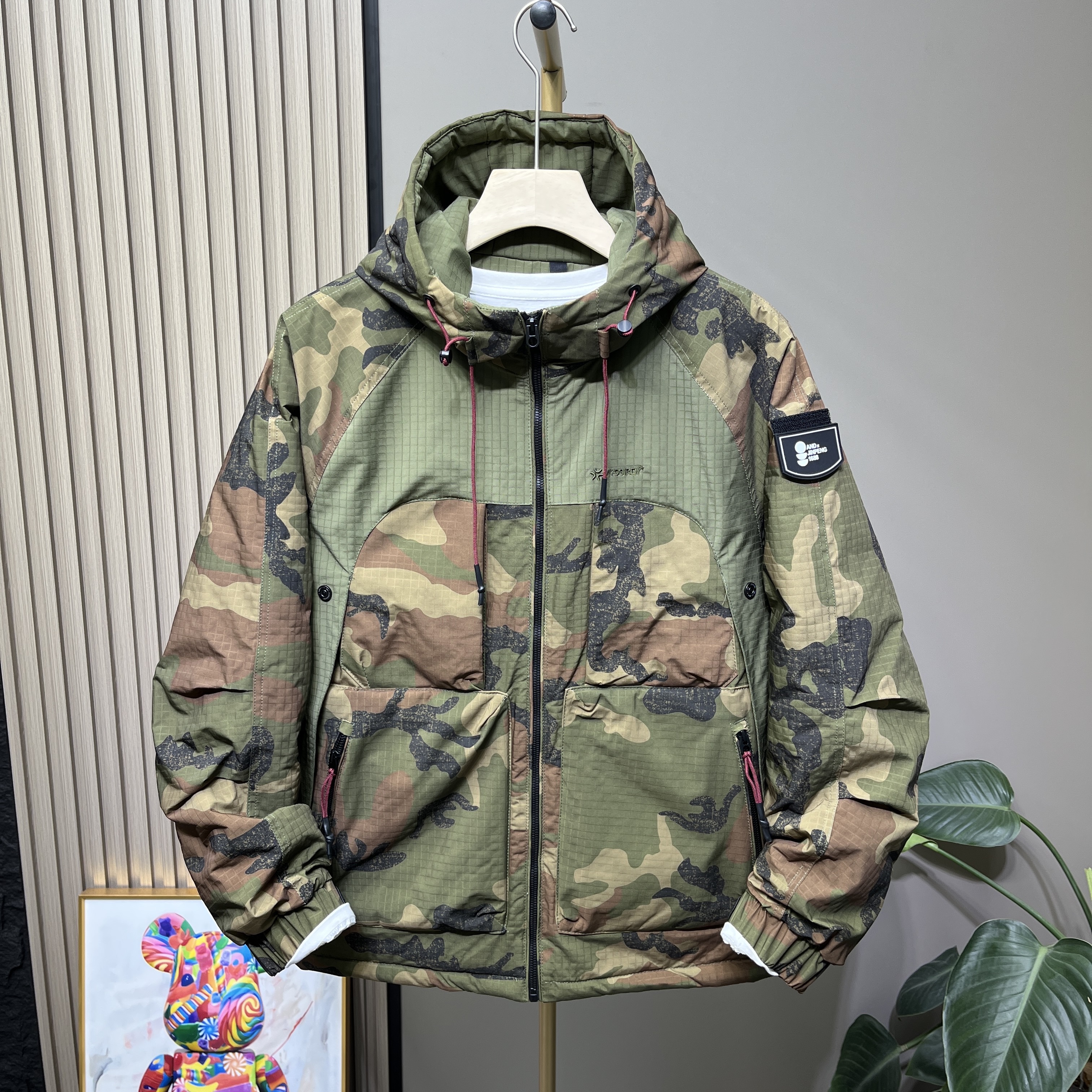 美式连帽迷彩薄棉休闲外套男秋冬男士棉服冲锋衣宽松时尚夹克棉袄