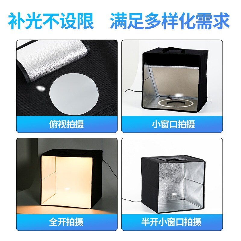 40cm微型手机拍照led补光灯柔光箱小型摄影棚淘宝产品拍摄台专业珠宝道具简易迷你背景布大便携式折叠灯箱子