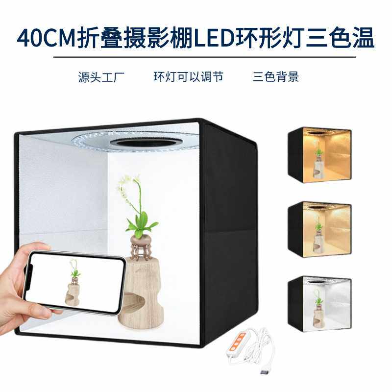 现货40cm折叠摄影棚 环形灯便携式简易摄影棚 带3张双面背景布