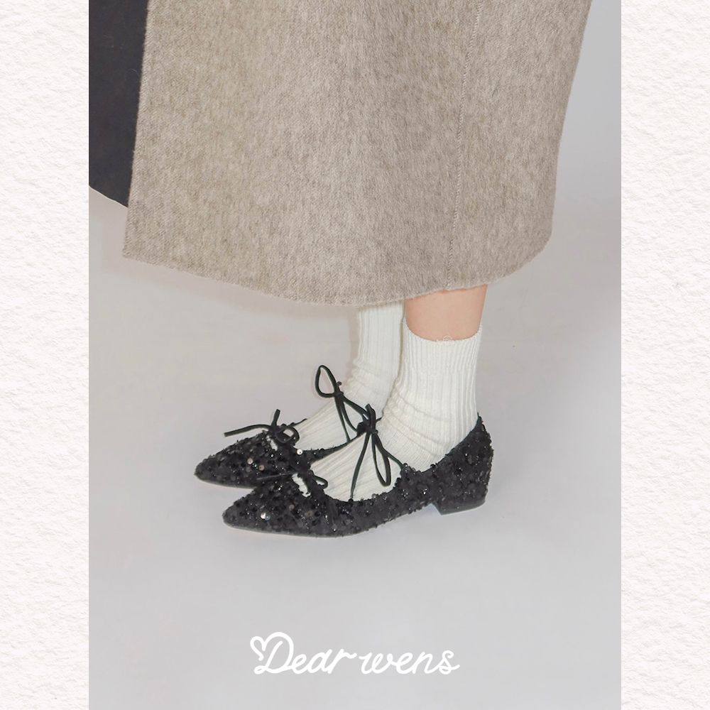 wddyshoes 手工鞋 年末小女人尖头小香面料蝴蝶结绑带小高跟单鞋