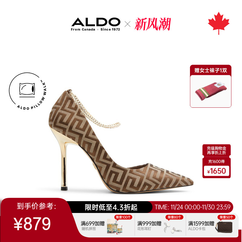 ALDO女士高跟鞋脚踝链条绑带尖头细跟侧空单鞋时尚大气ASFF24B27