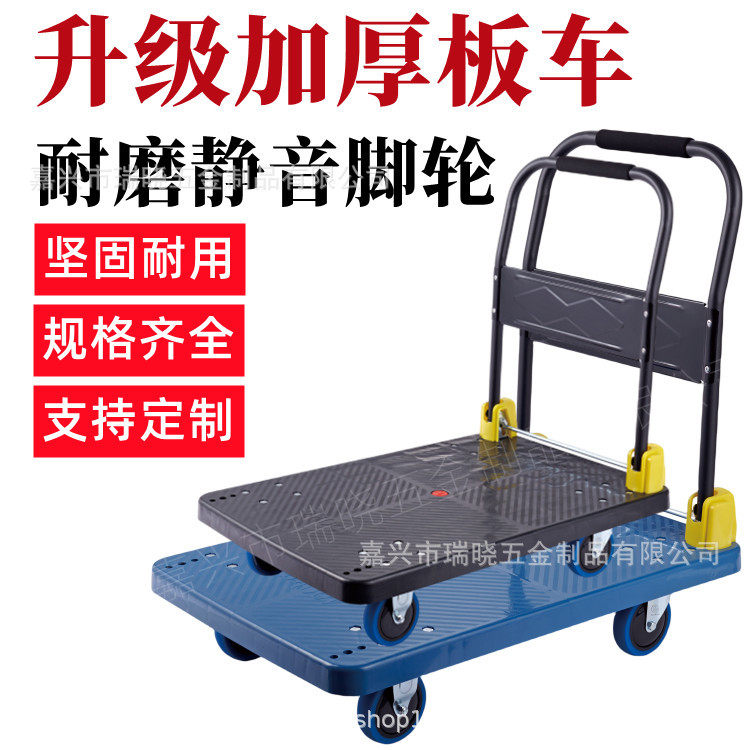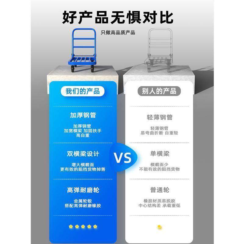 。小推车静音家用平板车手推车手拉货搬运车折叠可携式轻便四轮小
