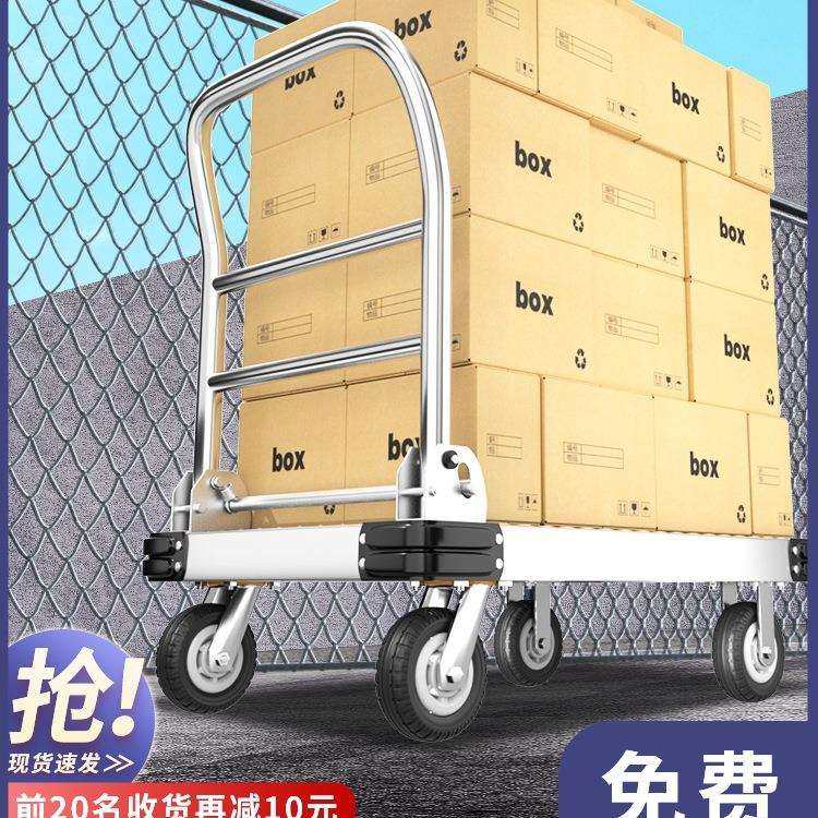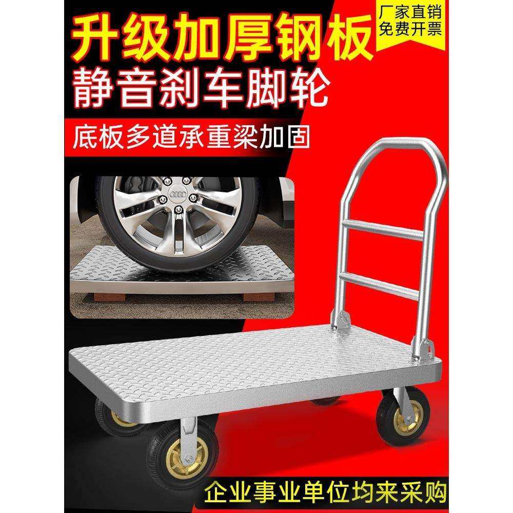 不锈平板车手推车搬运车推货车音折叠车小234推车拉钢货拖车小静