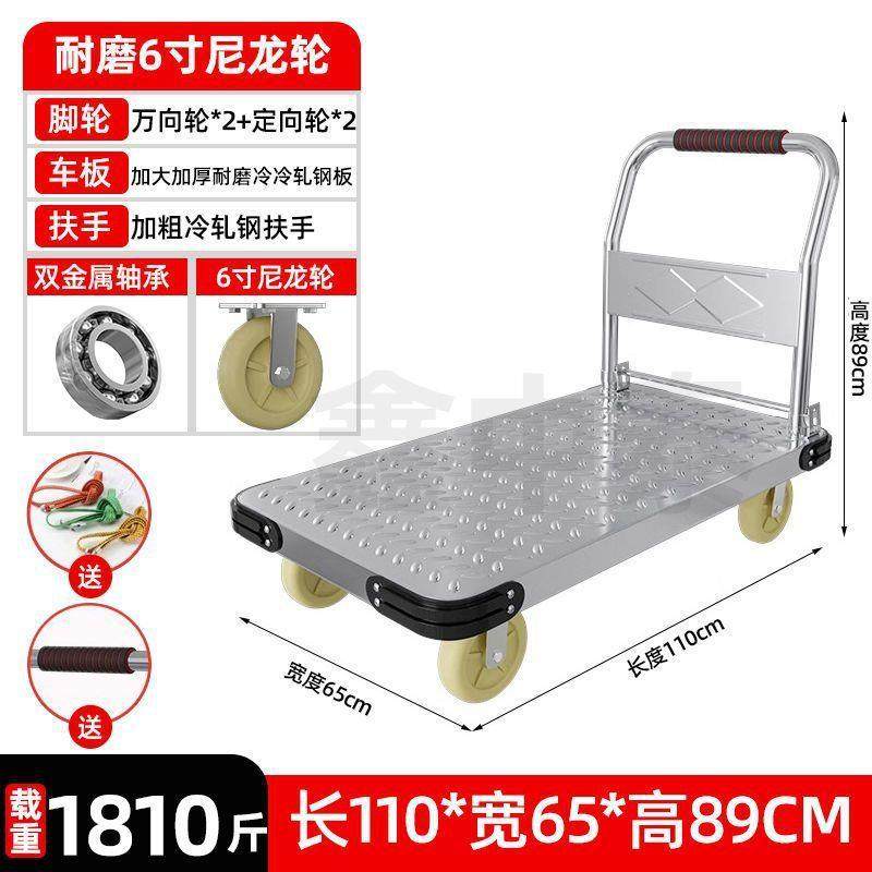 加厚不锈钢手推车搬运车折叠静音拉货平板车小推车厨房万向轮拖车