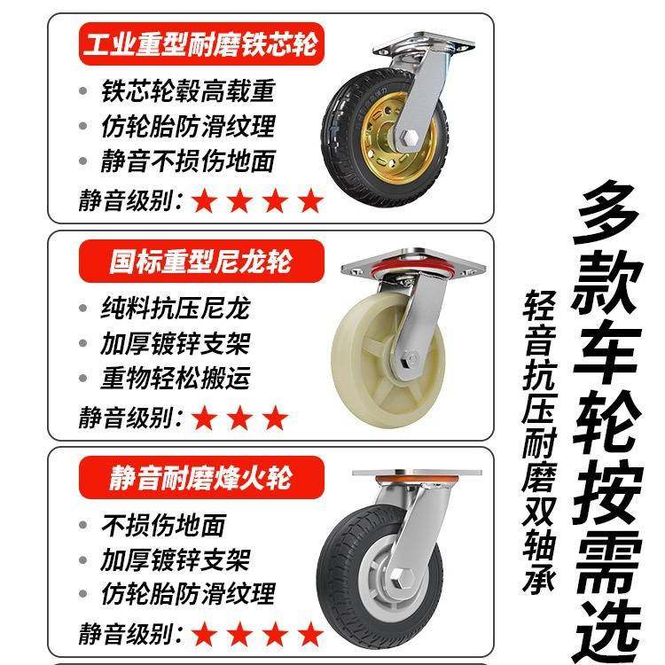 万向轮子重型平板手推车静音轮拖车滑轮带刹车34568寸橡胶脚轮