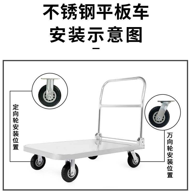 304不锈钢平板车手推车搬运车静音可折叠加厚四轮小推车拉货拖车