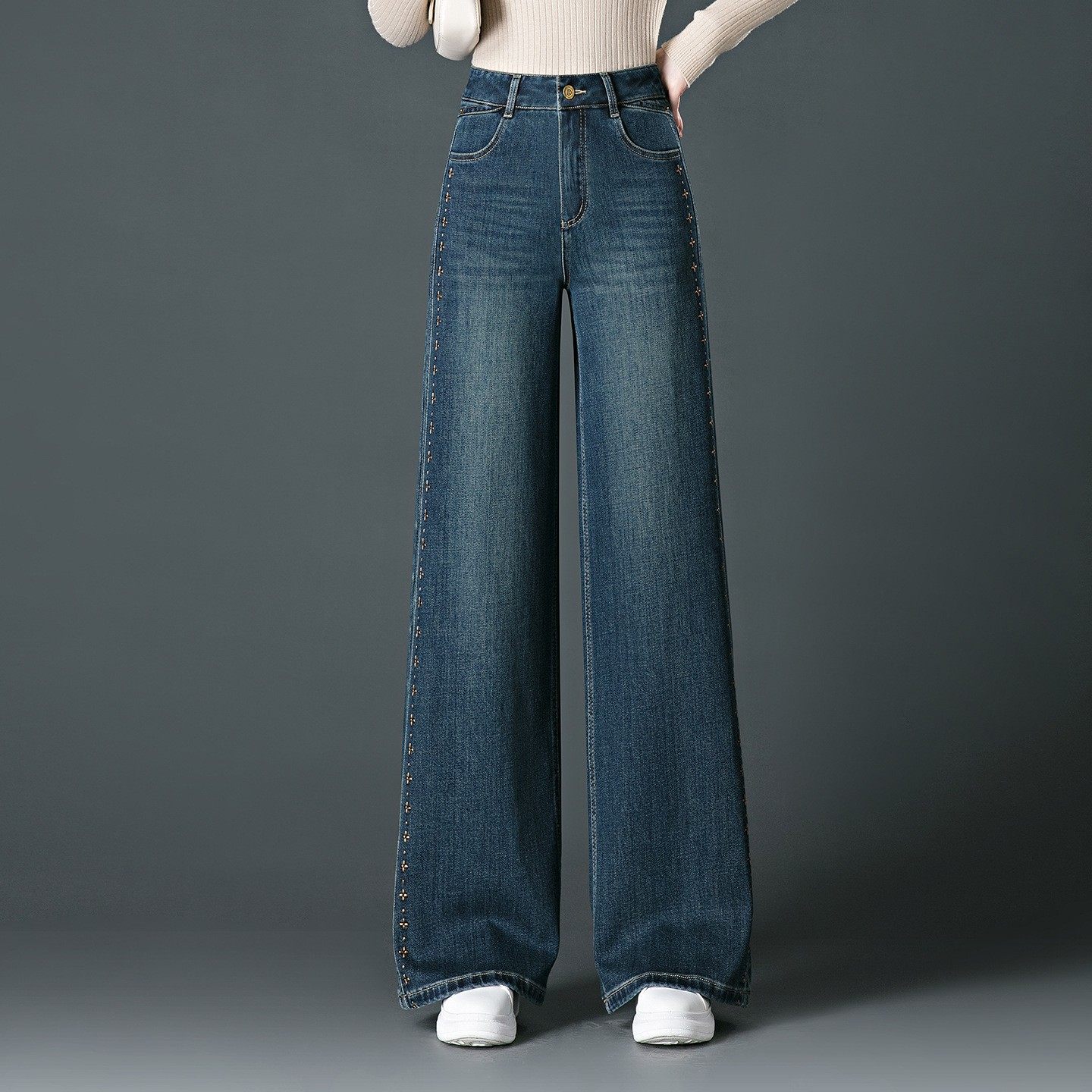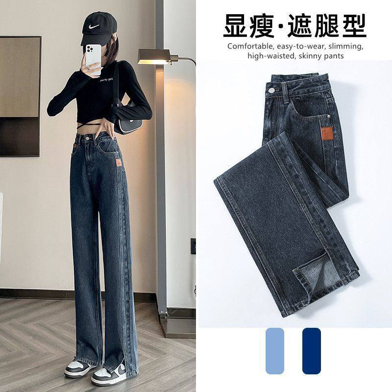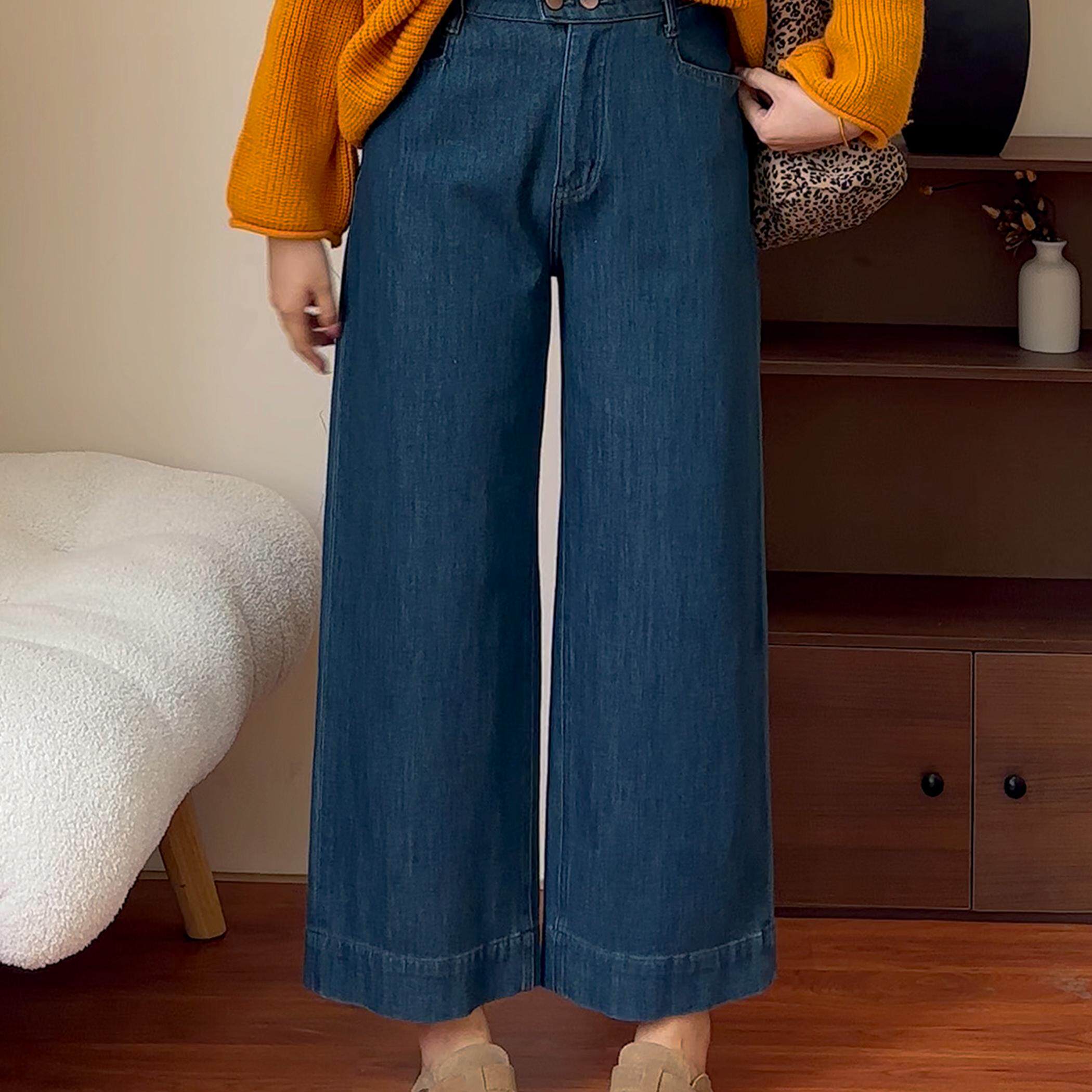 秋冬厚款牛仔阔腿裤女裤高腰阔脚裤宽松直筒裤牛仔拖地裤长女裤子