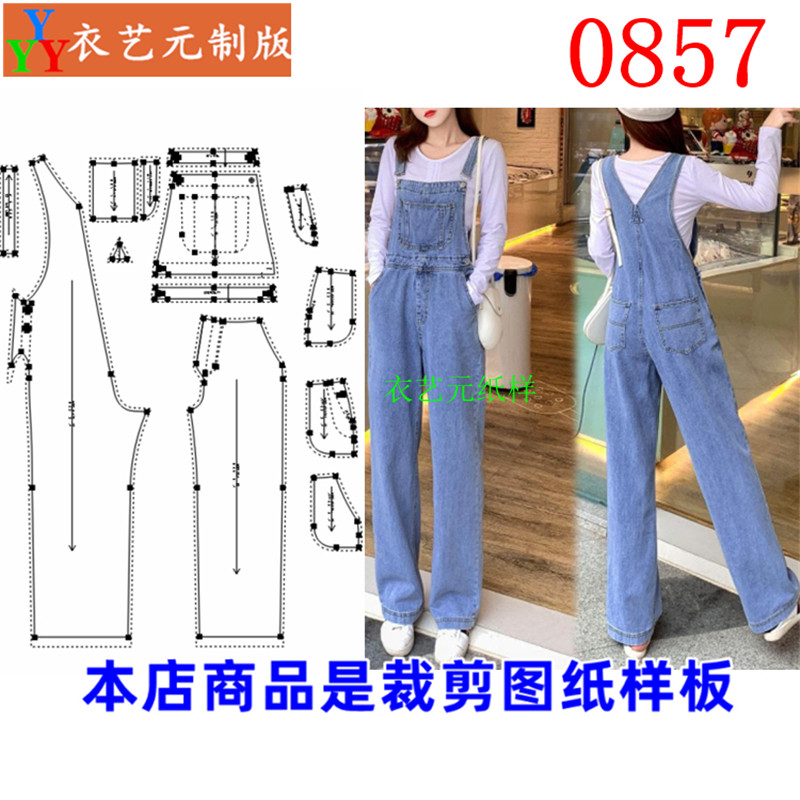 0857衣服装裁剪图纸样板新款韩版宽松牛仔背带裤高腰阔Z腿女裤女