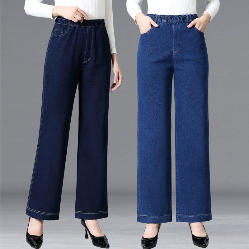 妈妈阔腿牛仔裤女2025秋新款高腰弹力宽松直筒阔脚长裤中老年女裤