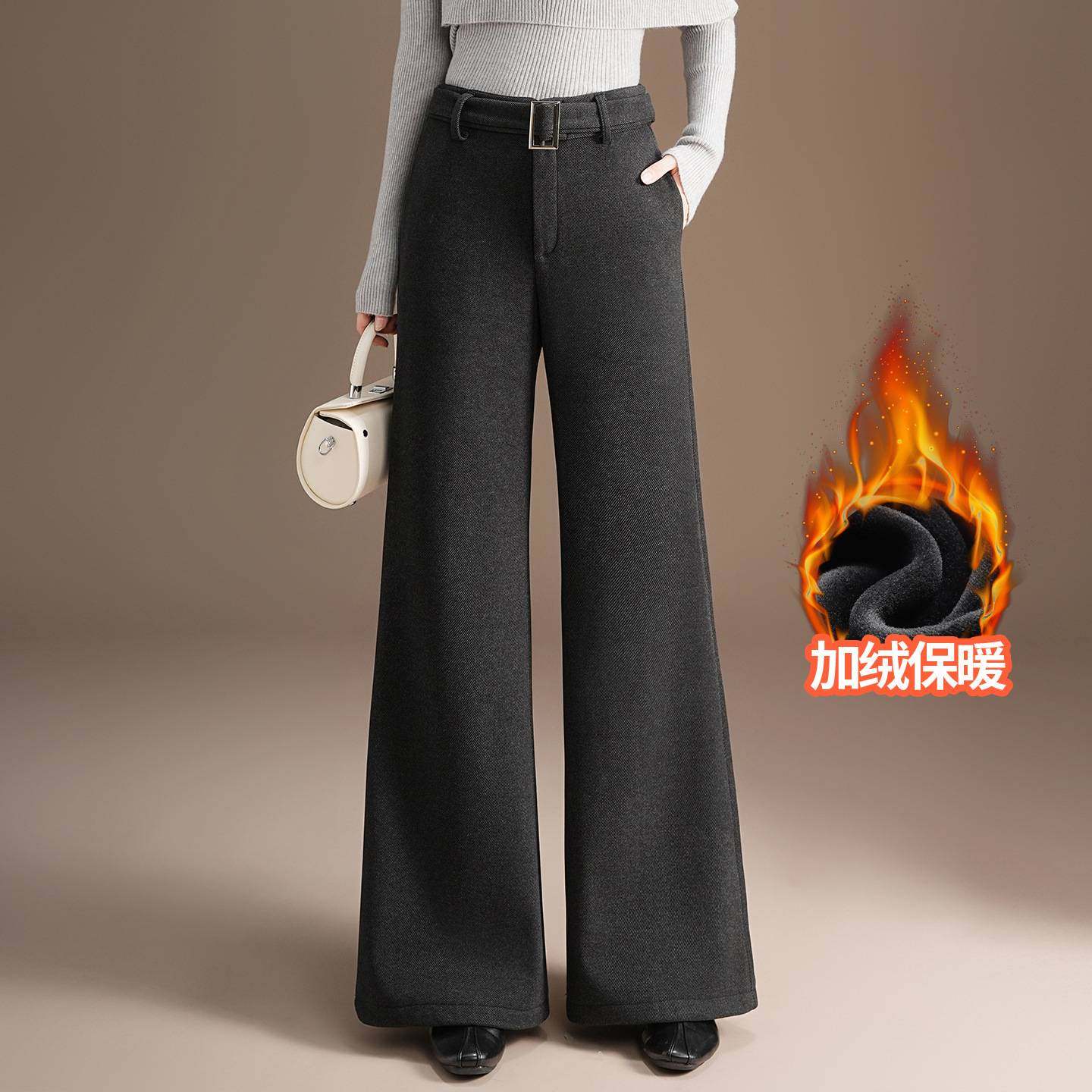秋冬厚款女裤羊毛呢阔腿裤高腰直筒裤显瘦显高韩版羊绒阔脚裤长裤