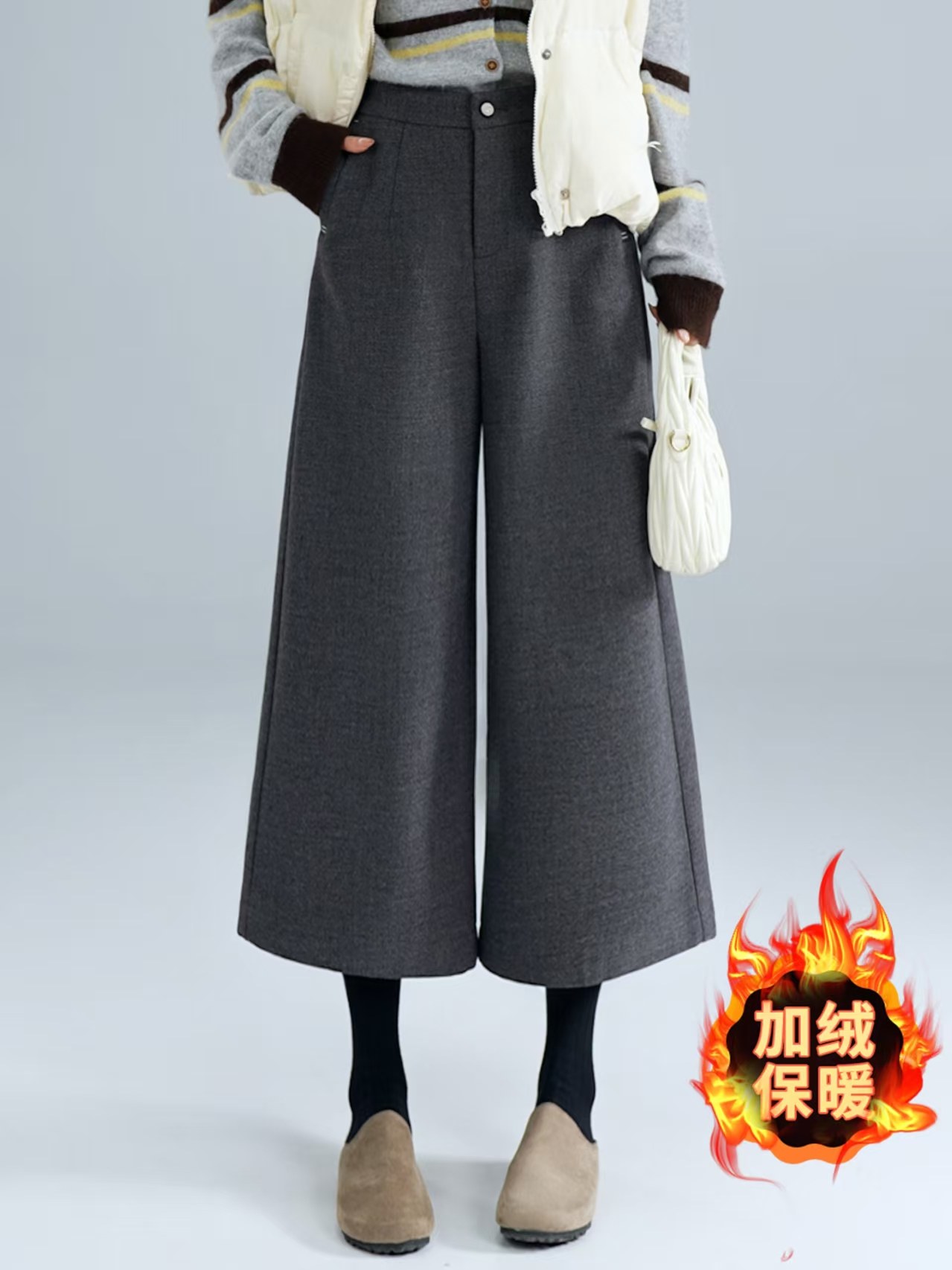 冬季2025高腰8分加绒阔腿865宽松百搭优雅显瘦时尚经典百搭直阔