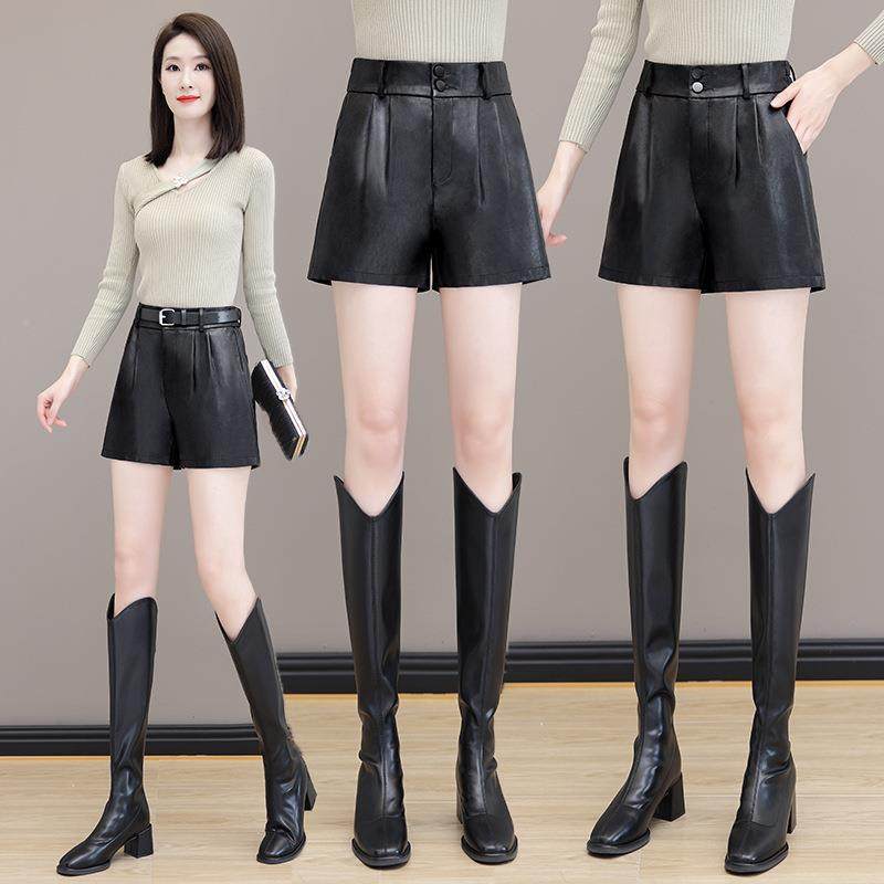 短女裤秋冬新款绵羊皮阔皮腿裤高腰休闲裤宽松裤子11128外季穿靴