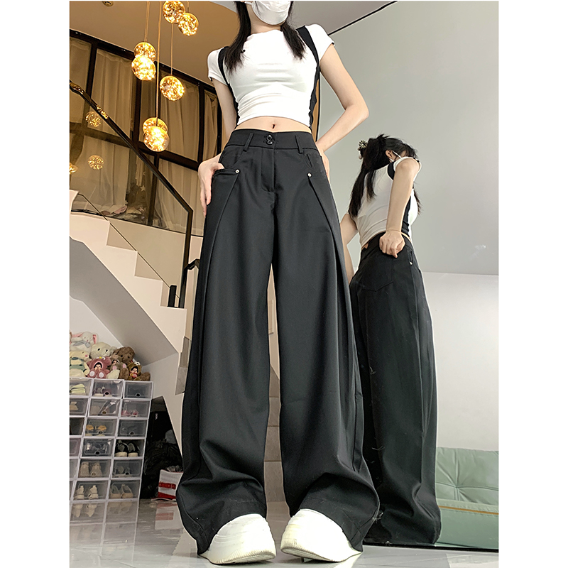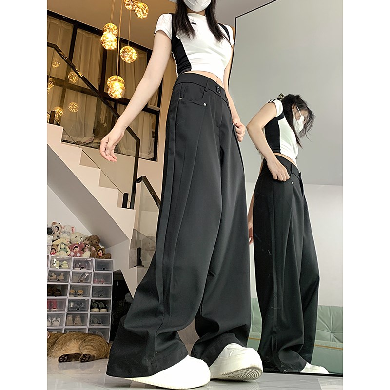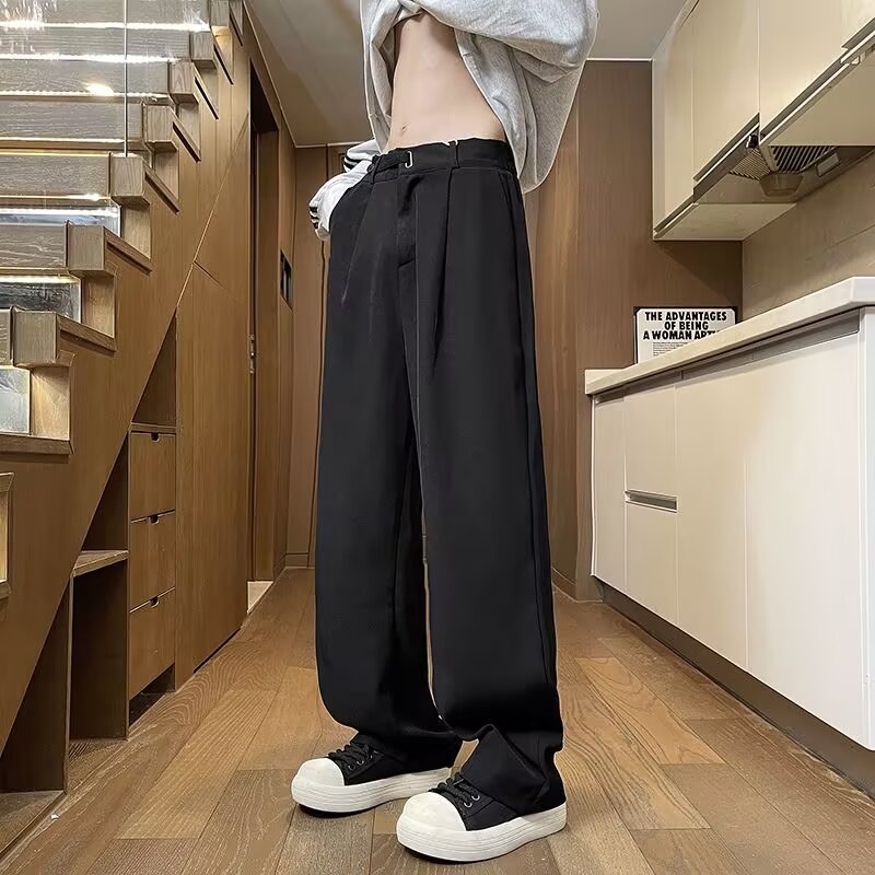 爆款小众垂坠感黑色西装裤男高级感金属扣设计宽松百搭阔腿休闲裤