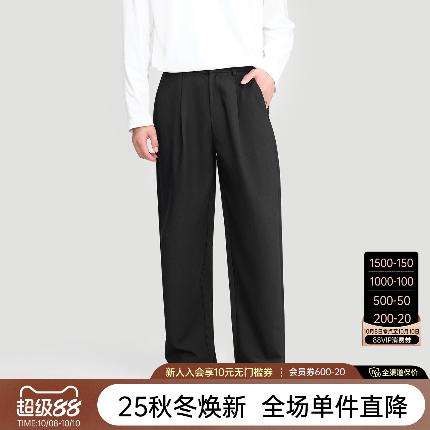 FEI黑色西装裤男士秋季垂感宽松直筒小西裤潮流休闲高级阔腿长裤
