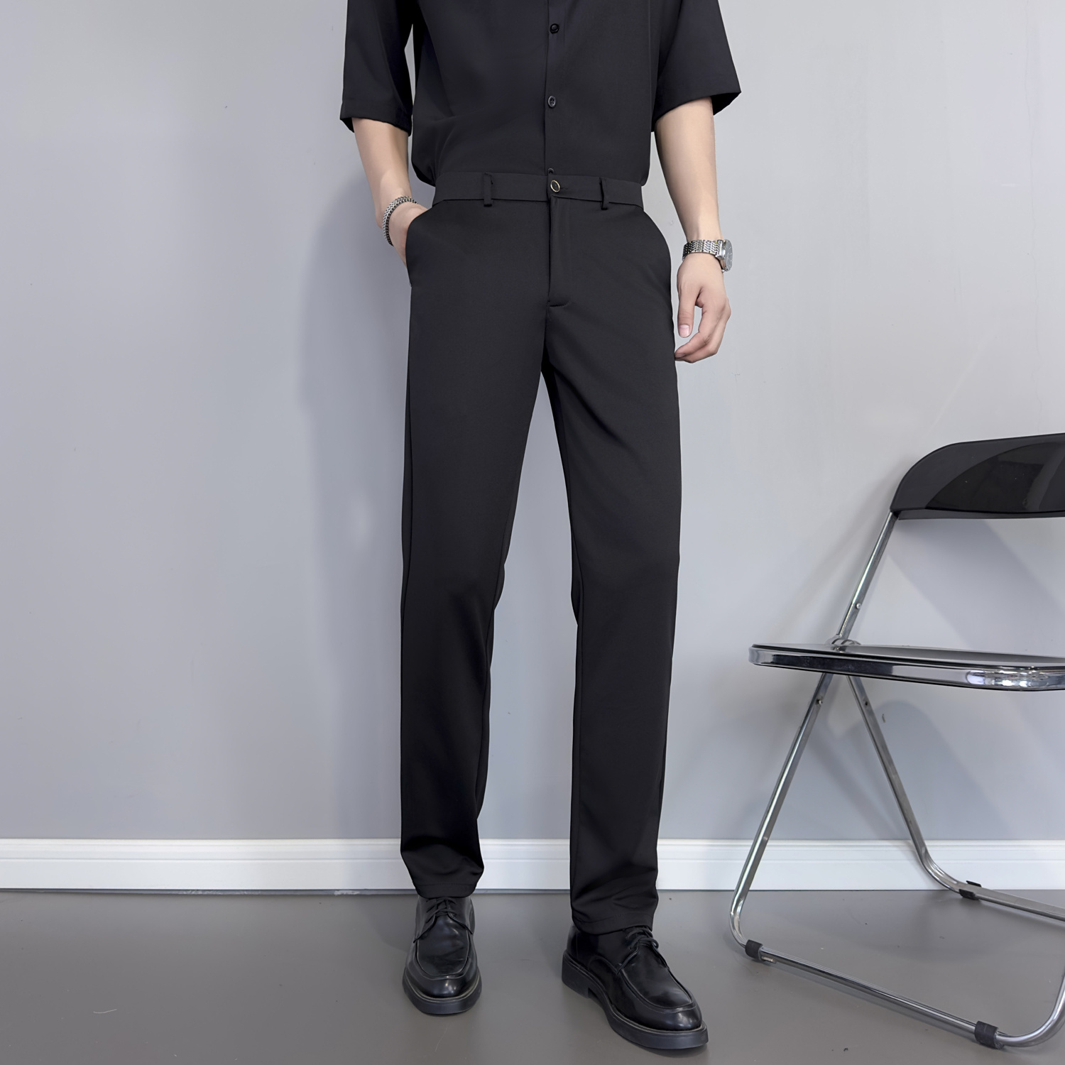 CeTky西裤男黑色夏季冰丝直筒休闲长裤百搭西装裤男士宽松裤子