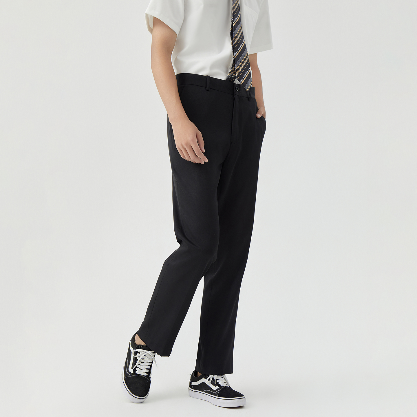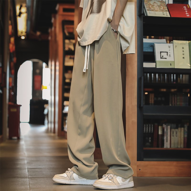 @港仔文艺男 冰丝裤子男夏季薄款黑色西装裤男Q生宽松直筒拖地热