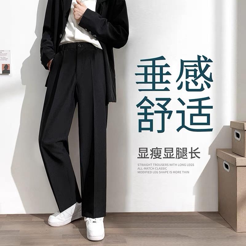 设计感黑色西装裤男春秋新款高级感垂感直筒裤潮牌休闲裤子男长裤