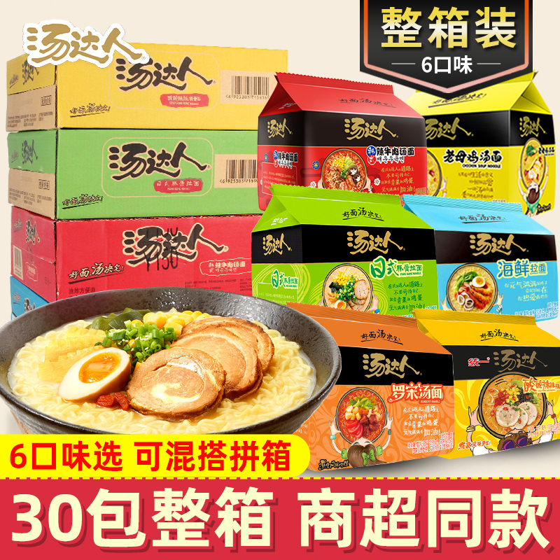 统一汤达人方便面袋装整箱日式豚骨酸酸辣辣海鲜拉面泡面速食夜宵