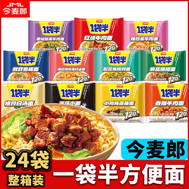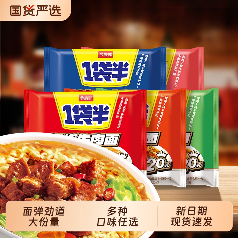 今麦郎1.5倍方便面袋装整箱一袋半红烧老坛酸菜夜宵速食免煮泡面