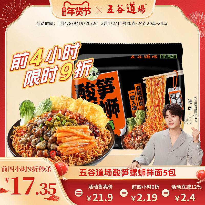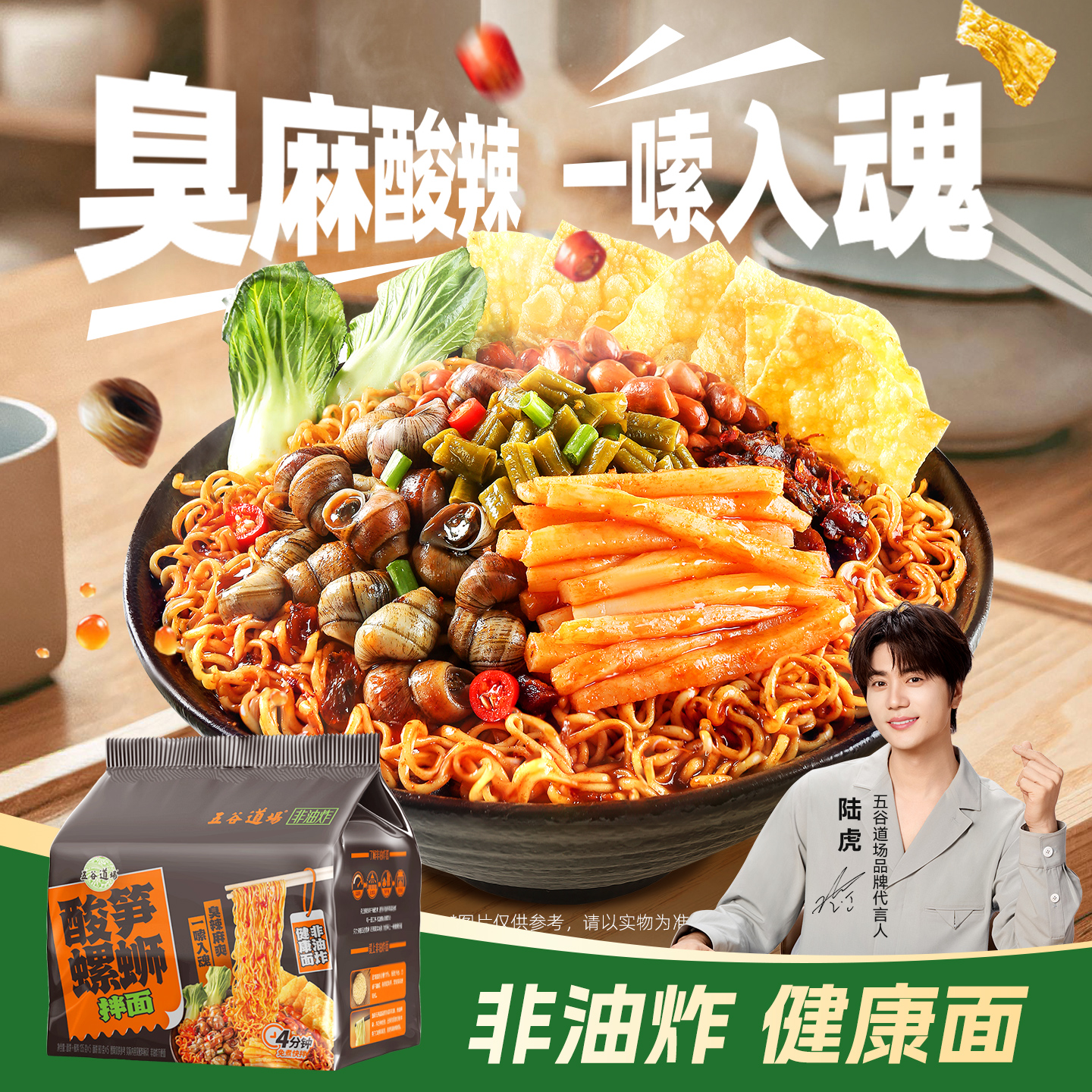 五谷道场非油炸酸笋螺蛳拌面方便面袋装整箱批发懒人速食食品泡面