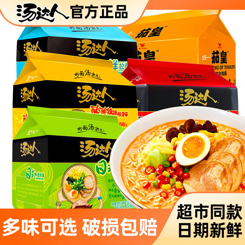 统一汤达人方便面袋装泡面日式豚骨拉面酸酸辣辣整箱海鲜罗宋汤面