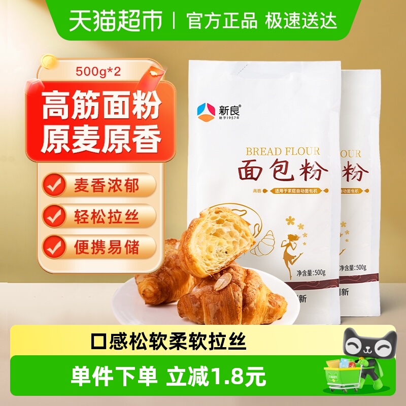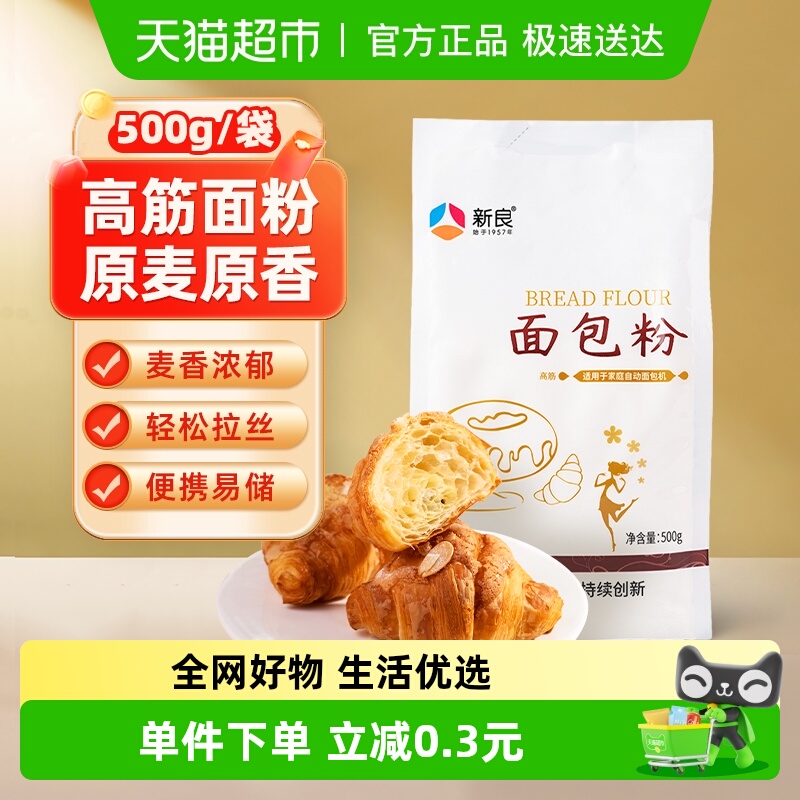 新良纯享高筋面粉500g面包粉吐司专用高筋小麦粉披萨家用烘焙原料
