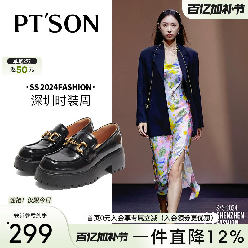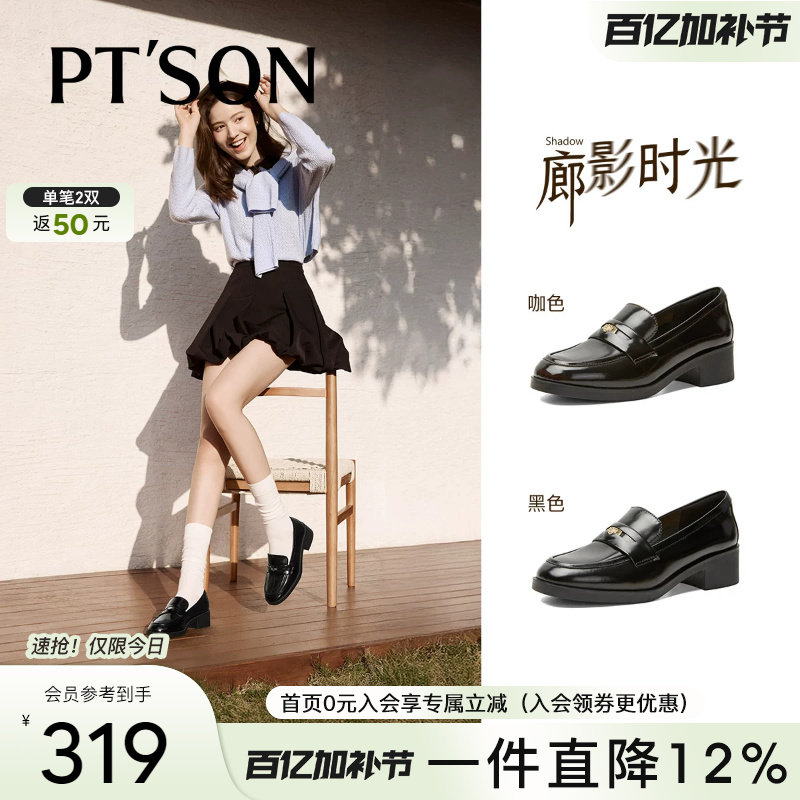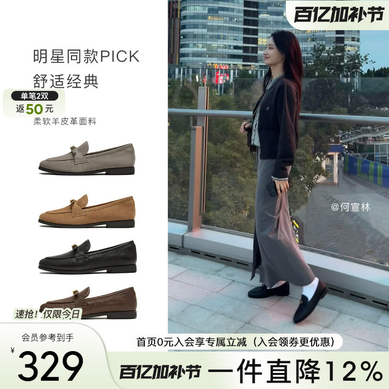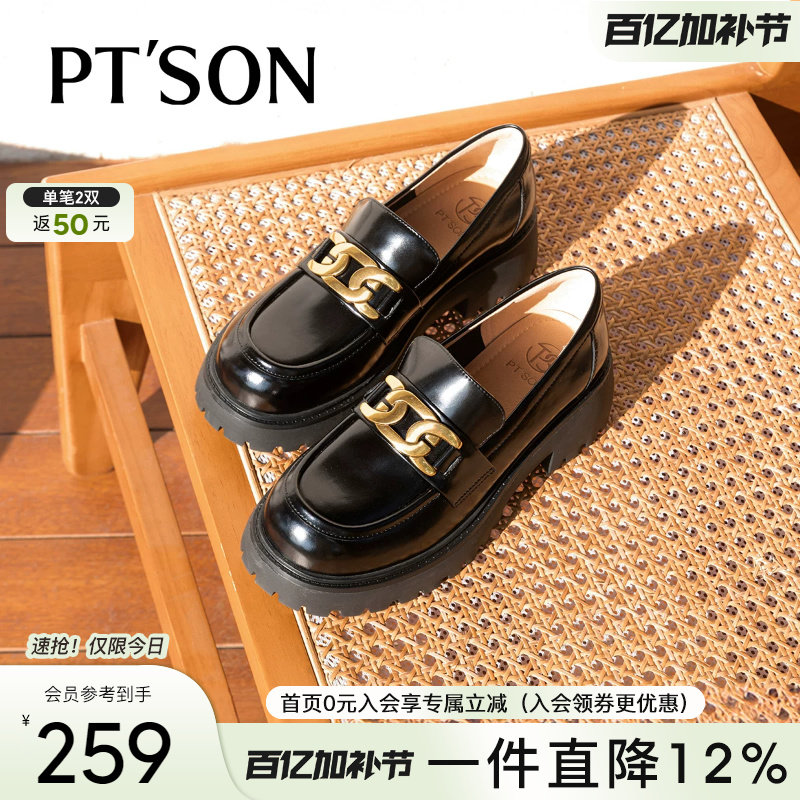 博主同款百田森极简乐福鞋女秋冬英伦厚底小皮鞋一脚蹬深口单鞋子