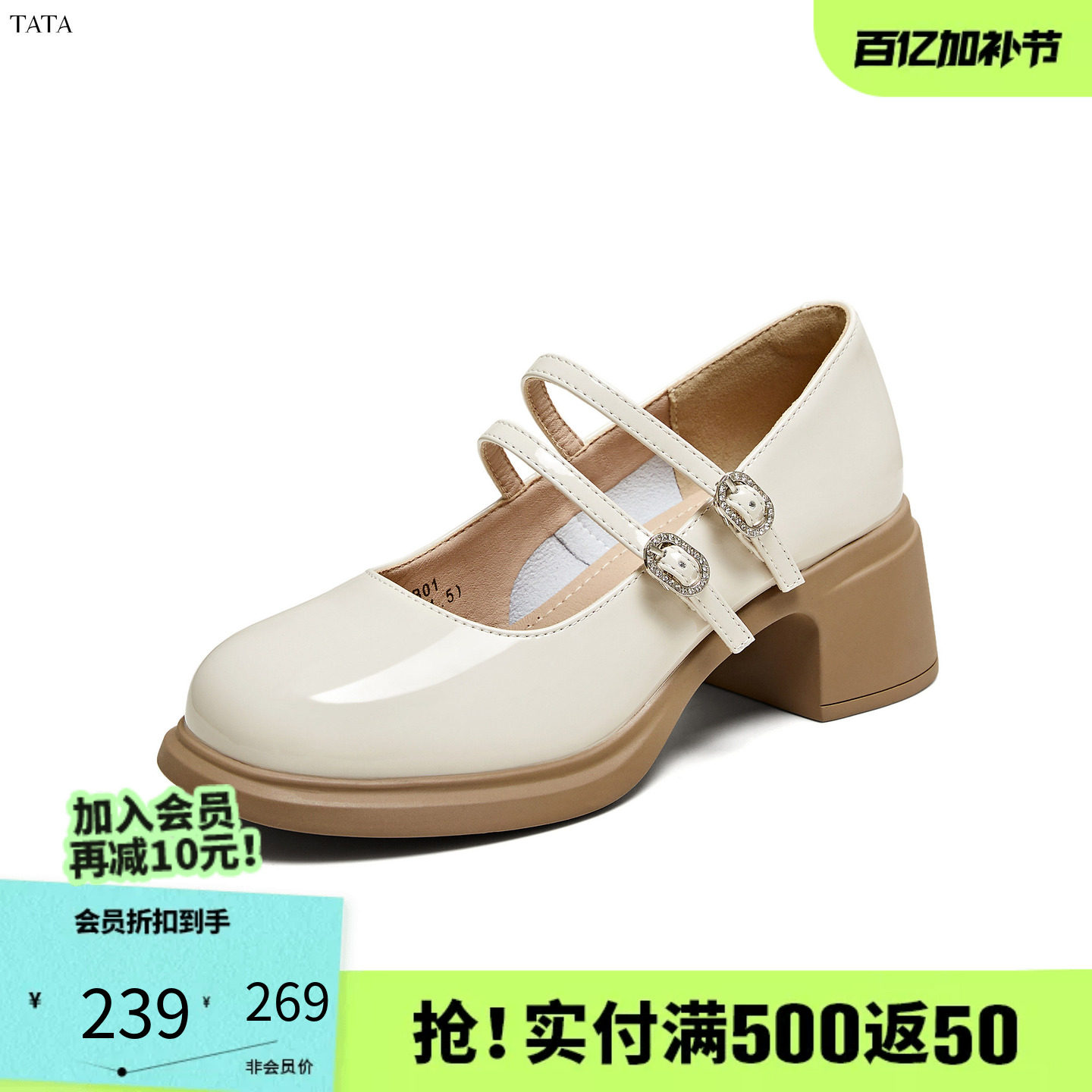 TATA他她女鞋冬季甜美百搭玛丽珍鞋百搭小皮鞋圆头单鞋子WGB01BQ4