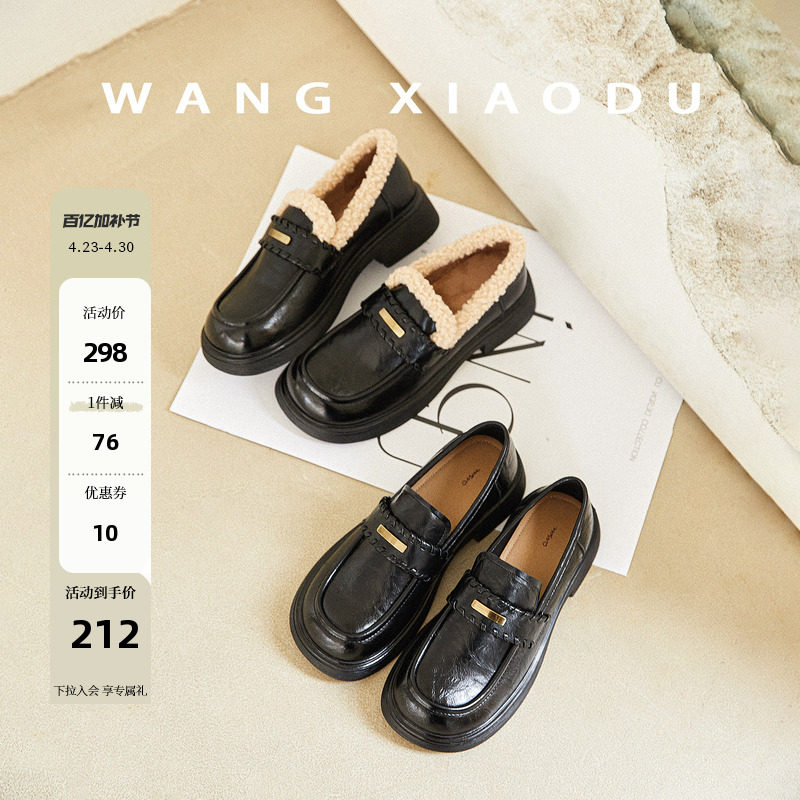 【王小毒】学院编织●4cm厚底乐福鞋女加绒保暖复古毛毛小皮鞋冬