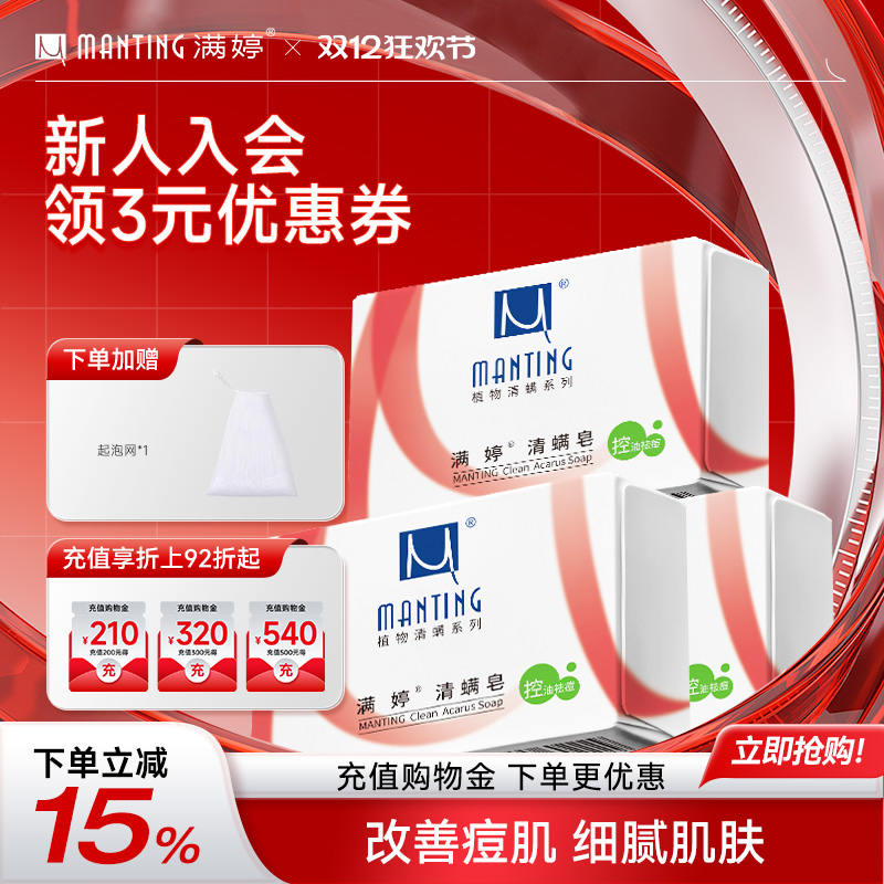 满婷除螨皂女男士去螨虫香皂100g*2洗澡洗脸洗手沐浴肥皂家庭装