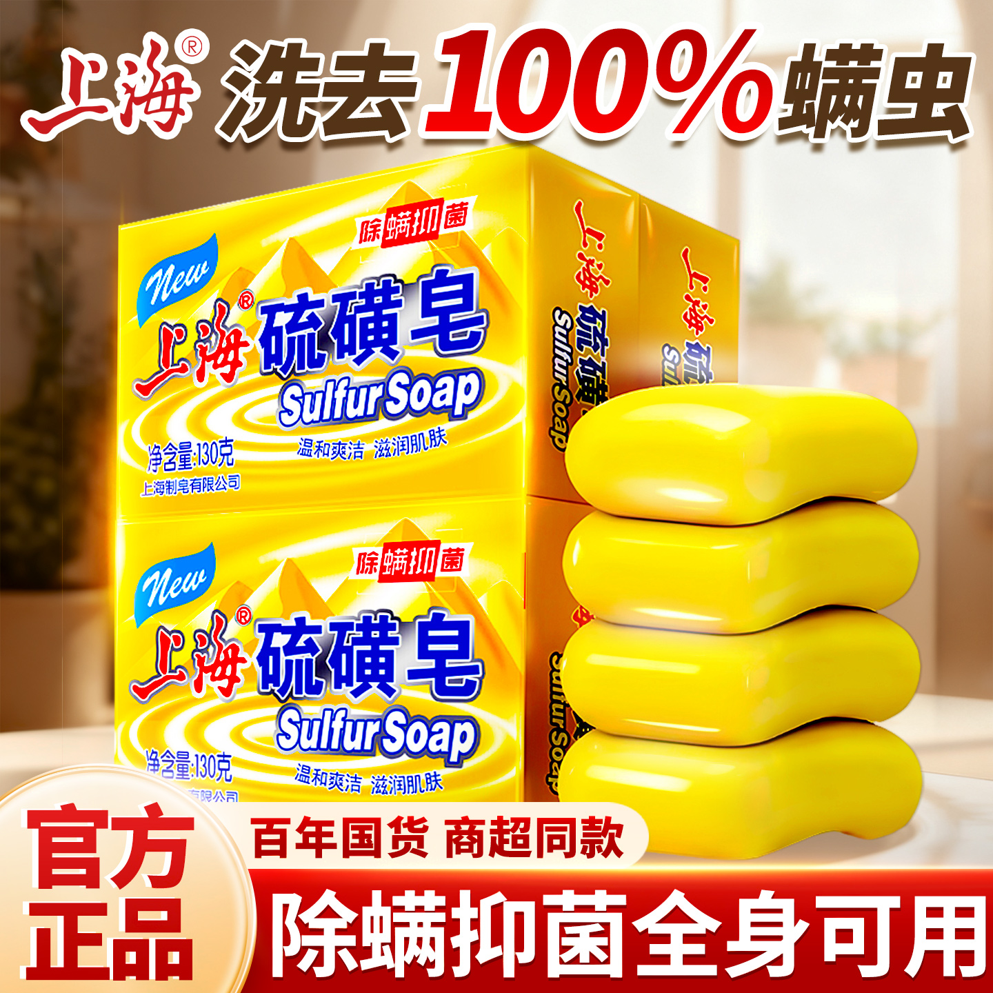 硫磺皂上海香皂肥皂正品官方旗舰店除螨男士洗澡去背痘去螨虫国货