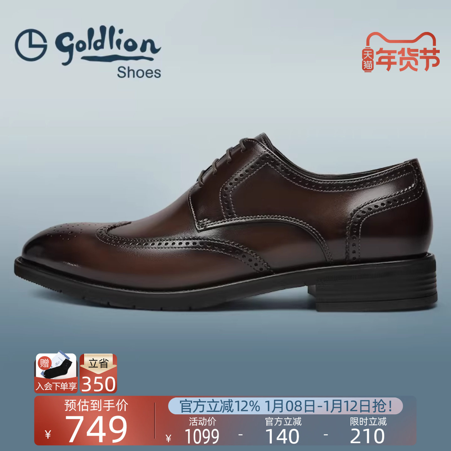 金利来男鞋2025新款商务系带正装皮鞋男士真皮雕花布洛克鞋德比鞋