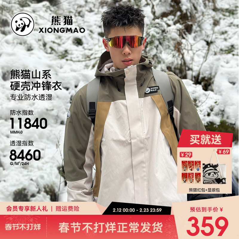 熊猫骆驼冲锋衣外套男夹克2026新款撞色百搭防风防水户外情侣风衣