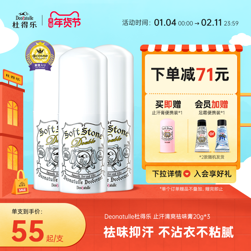 【自营】Deonatulle杜得乐经典祛味止汗石20g*2干爽持久消臭狐臭
