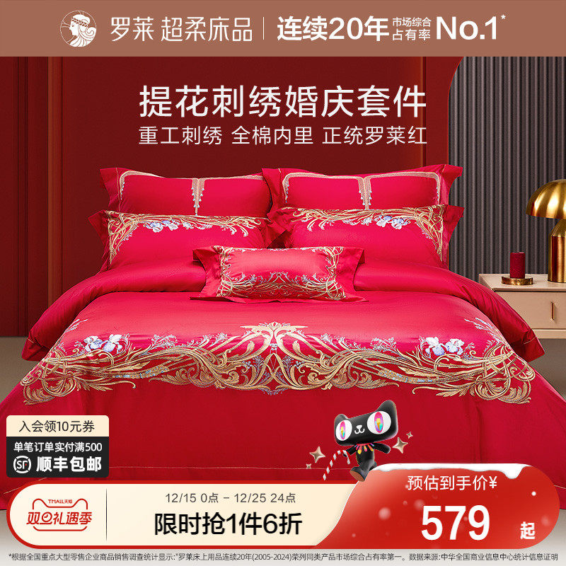 罗莱家纺结婚四件套全棉喜庆婚庆婚床上用品大红色囍嫁婚庆六件套