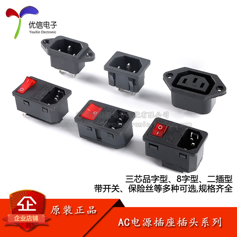 AC-01A电源插座带灯带保险丝电源插座三合一带开关带保险品字插座
