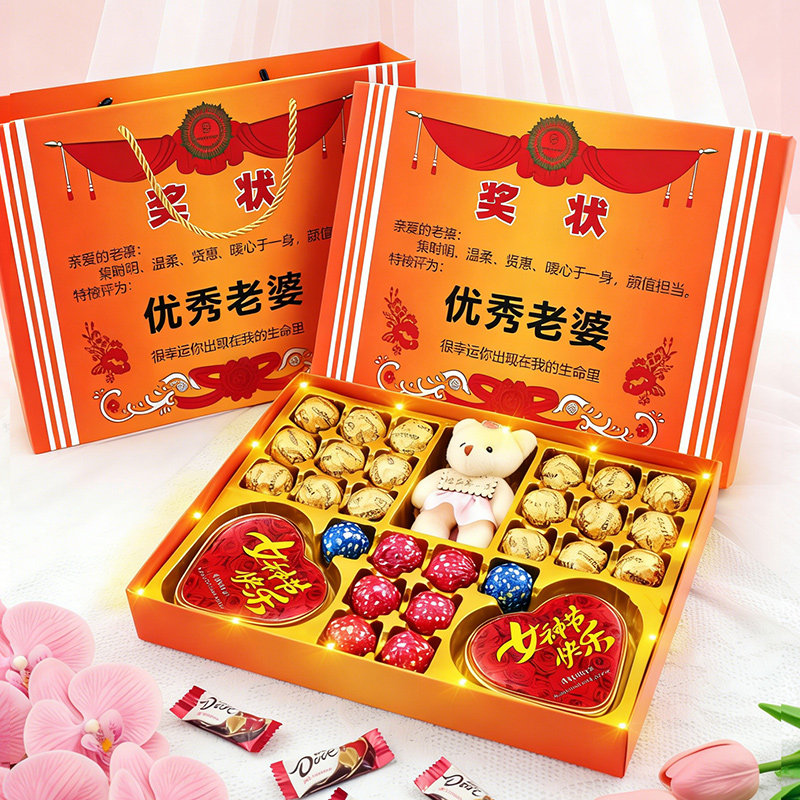 三八女神节德芙巧克力礼盒装送女朋友奖状优秀老婆3.8妇女节礼物
