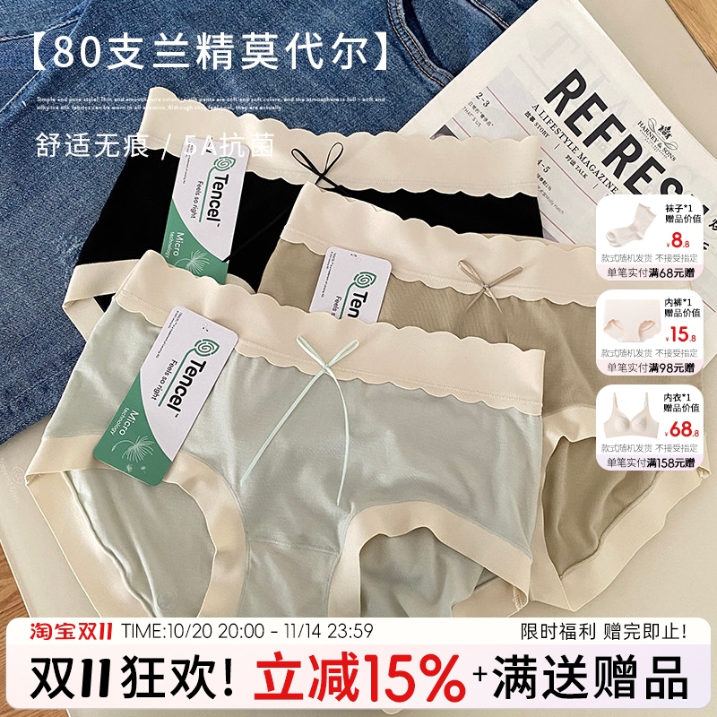 安比斯内裤女生莫代尔无痕蚕丝7A抑菌中腰大码2025新款女士三角裤